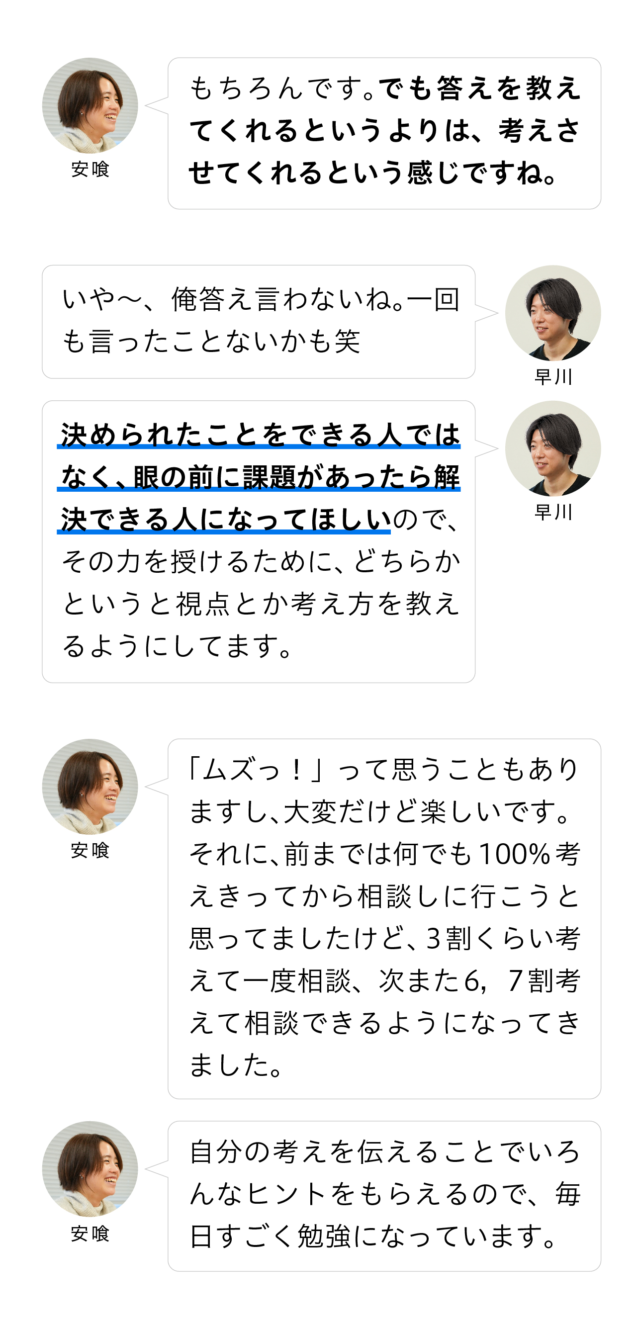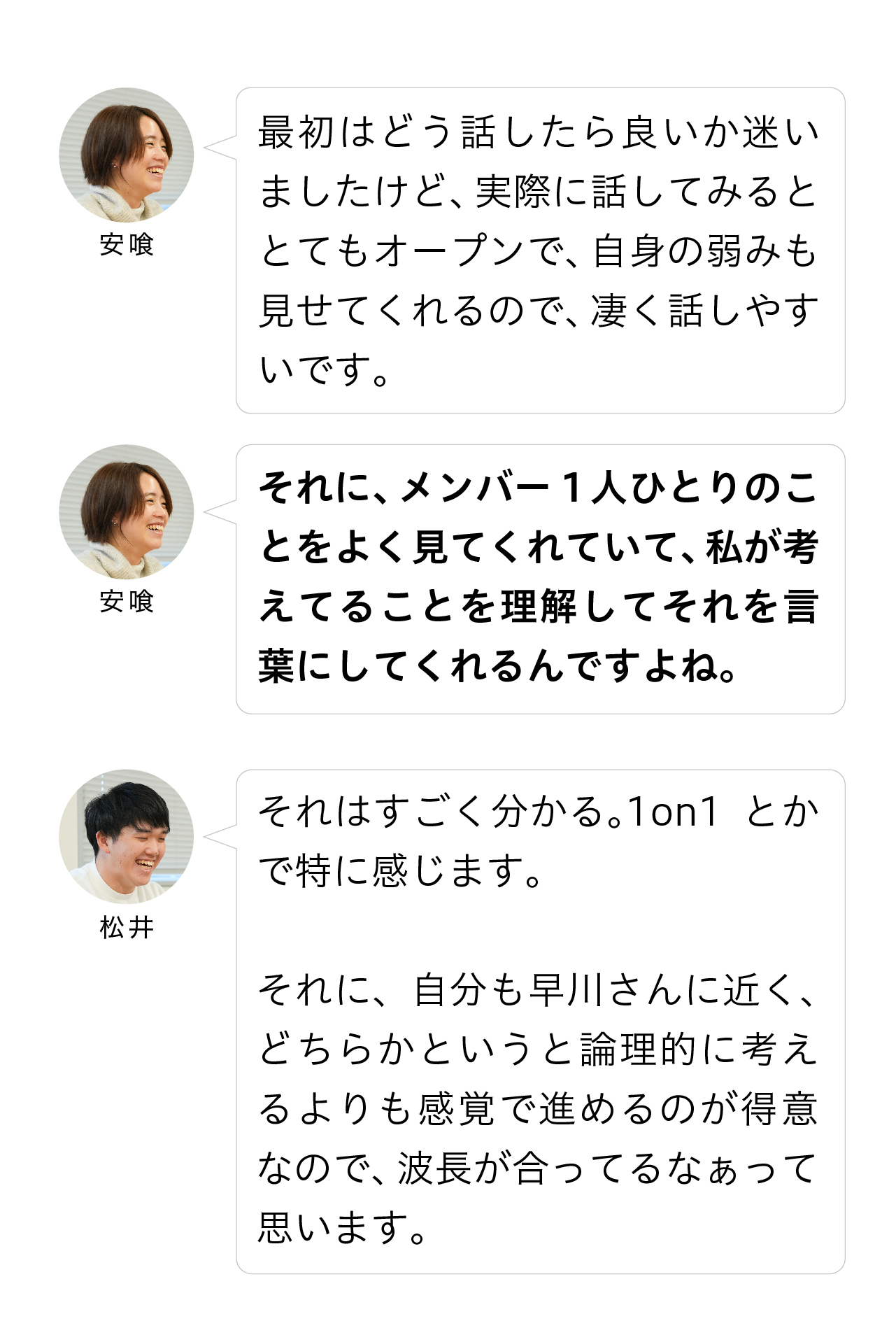 ー では、逆に2人絡みて上司の早川さんはどうですか?