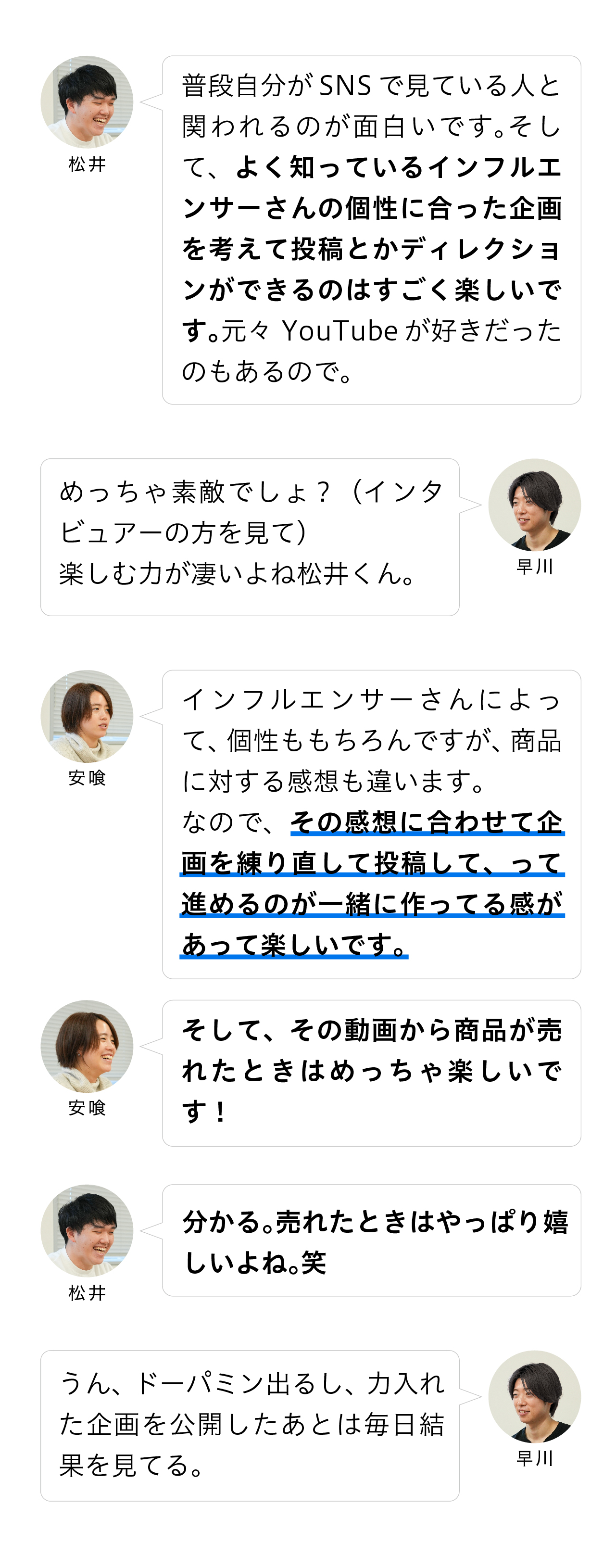 ー では、インフルエンサーマーケで楽しいと感じることを教えて下さい