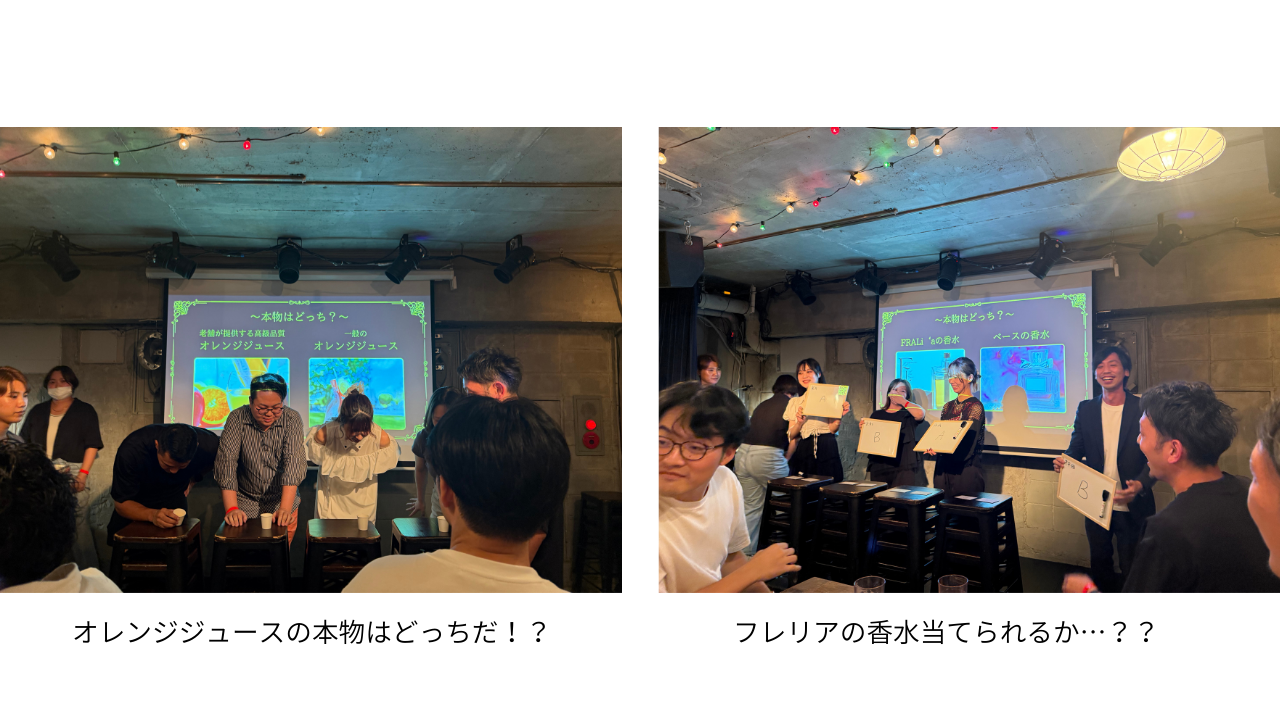 自社ブランド「Frelia」の香水と、ベンチマーク商品の香水を嗅ぎ比べたり…。