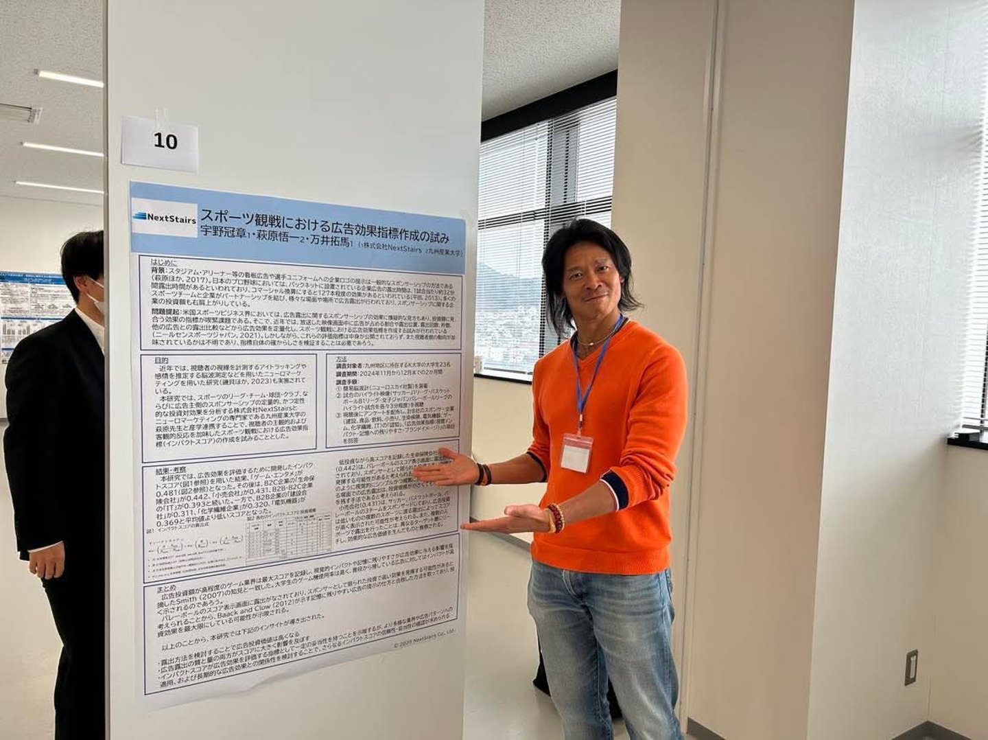 NextStairsは、 2025年3月2日に九州産業大学にて開催された、九州スポーツ心理学会第38回大会にポスター掲示・発表しました。写真はNextStairsのエバンジェリスト/顧問である宇野が発表している際のものです。