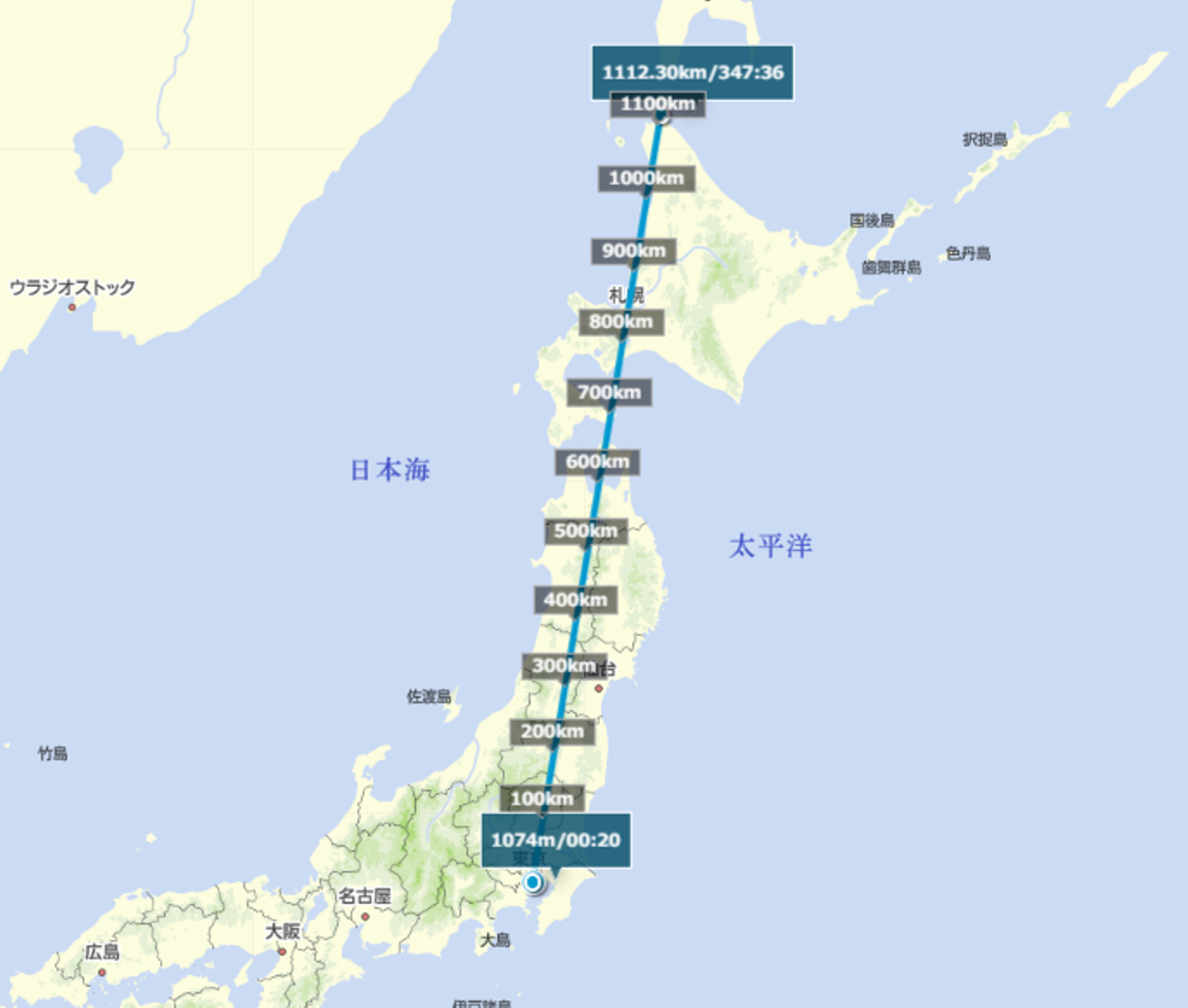 オムロン調べによると(https://www.faq.healthcare.omron.co.jp/faq/show/4195?site_domain=jp)成人男性の1歩は約55cmのようなので、今回のすとさん(2,022,226歩)に55cmを掛けると