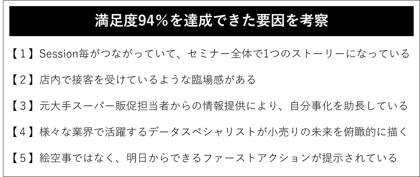 それでも、セミナー後の満足度が94%っていうのは、なかなかすごくないですか?(しつこい)