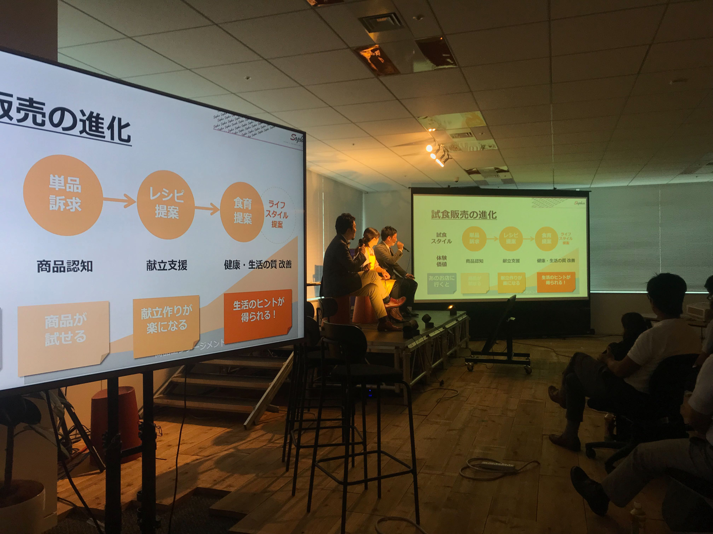 本セミナーは、我々「ONE COMPATH」と、日々様々な仕事をご一緒させていただいている「arm TREASURE DATA」と「BrainPad」の3社共催となっており、ゲストに親会社である「凸版印刷」と弊社のパートナー企業の「こまちテラス」、流通さんの店頭にて試食販売などを行っている「ソフィアプロモーション」をお迎えして、計6社による合同セミナーとなりました。