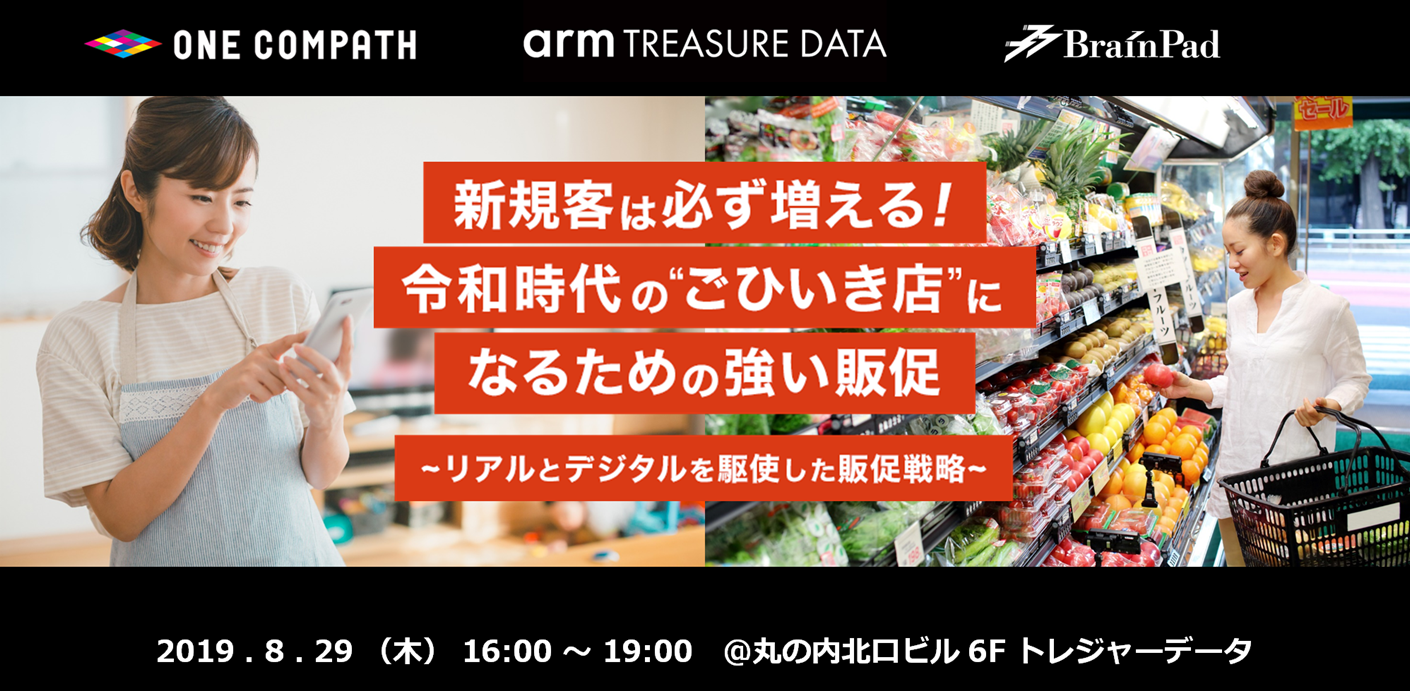 今回のセミナーは、前にも記載した通り、凸版印刷やONE COMPATHだけで主催したものではなく、データビジネス界隈で有名な、「arm TREASURE DATA」と「BrainPad」にもご協力いただきました。