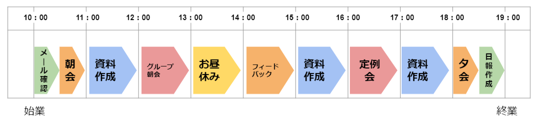 朝会と夕会ではOJT担当の先輩方と一緒にその日のスケジュールや発表課題の進捗確認を行っていました。作業で悩んだことや分からないことなど何でもこの時間に聞くことができたので、ありがたかったです。