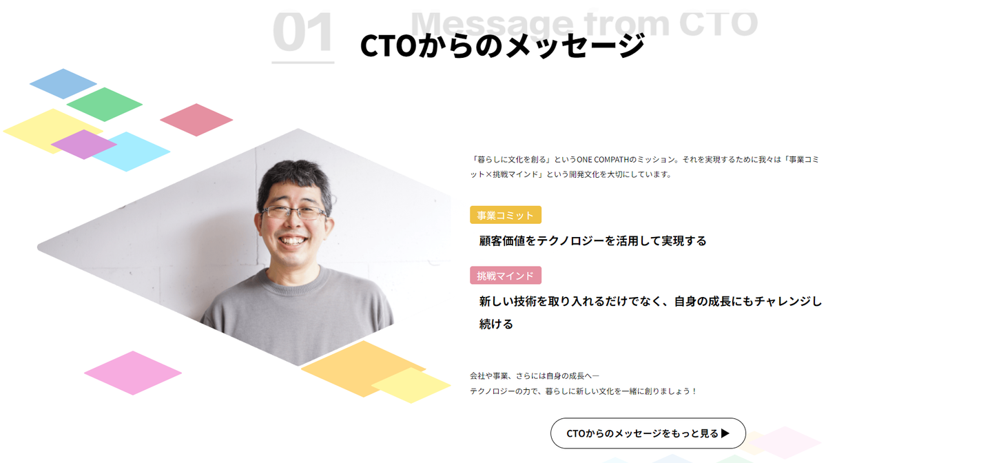 ONE COMPATHの開発部隊の魅力をたっぷり詰め込んでいます。今後もコンテンツを拡充していきたいと考えていますが、当社で働くことに興味を持っていただける方に是非ご覧いただけたら嬉しいです。