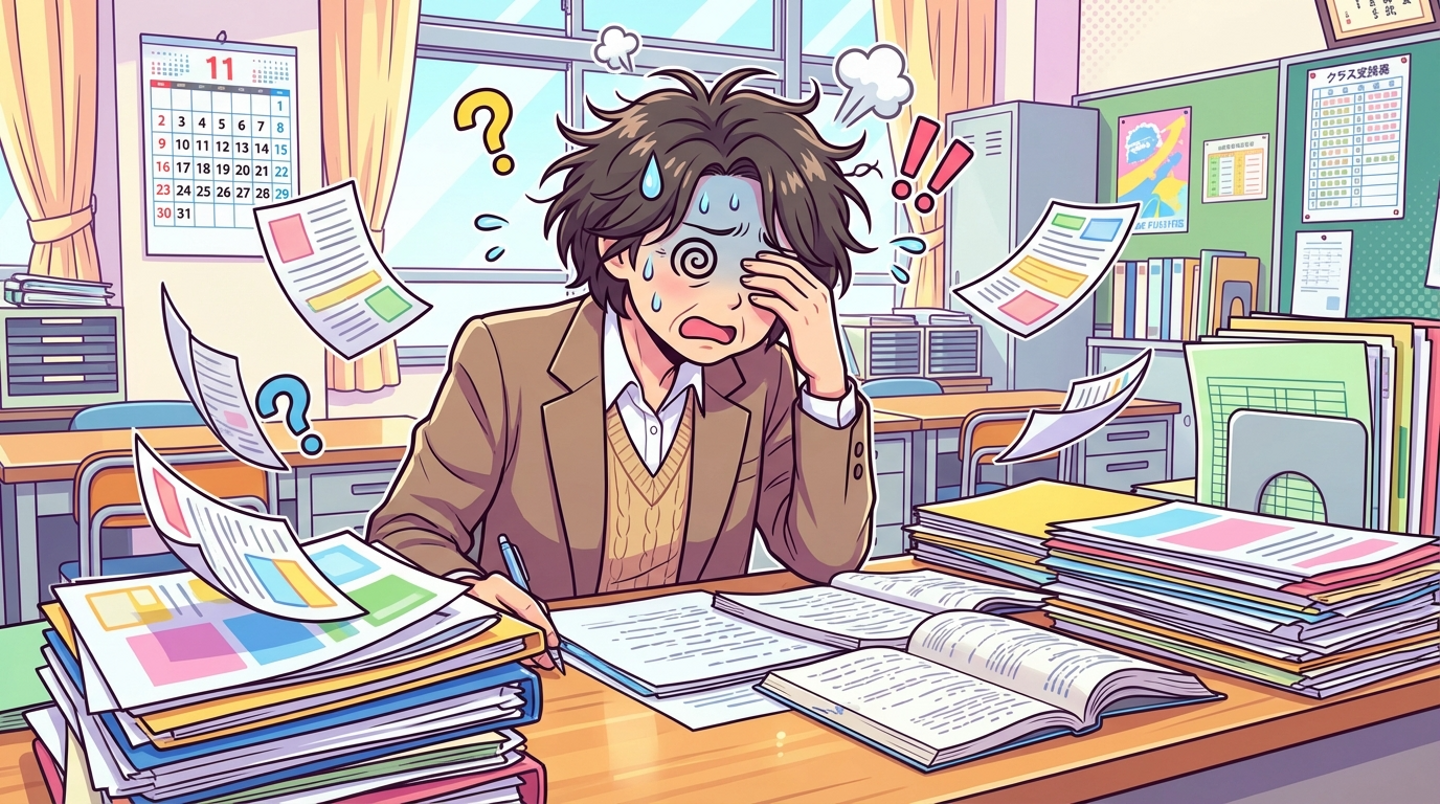 校長先生、教頭先生、教務主任、進路主任、学年主任、新米の先生...
