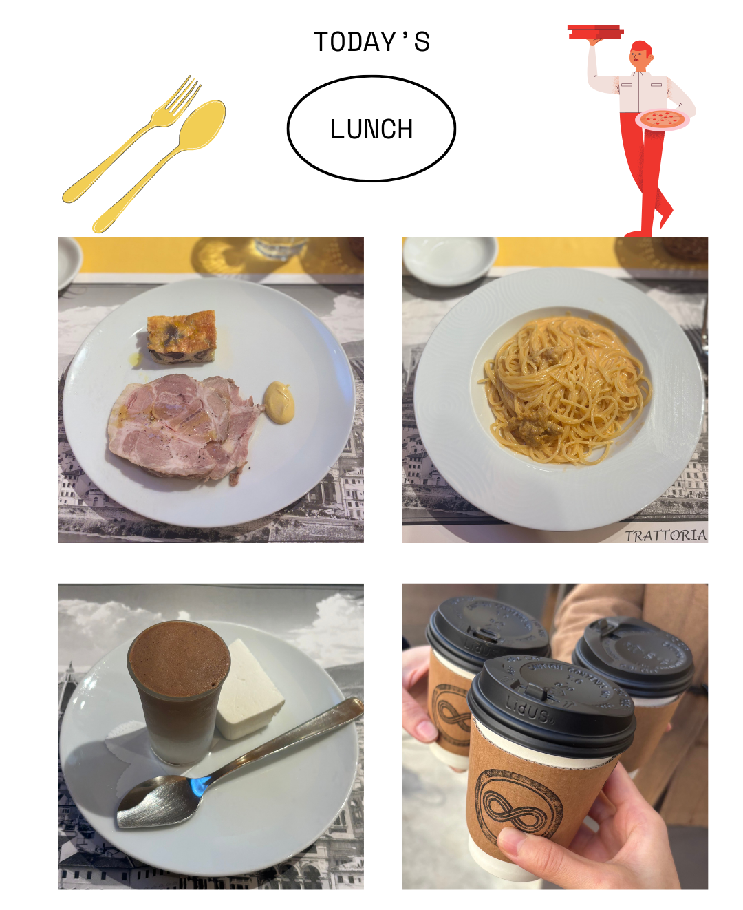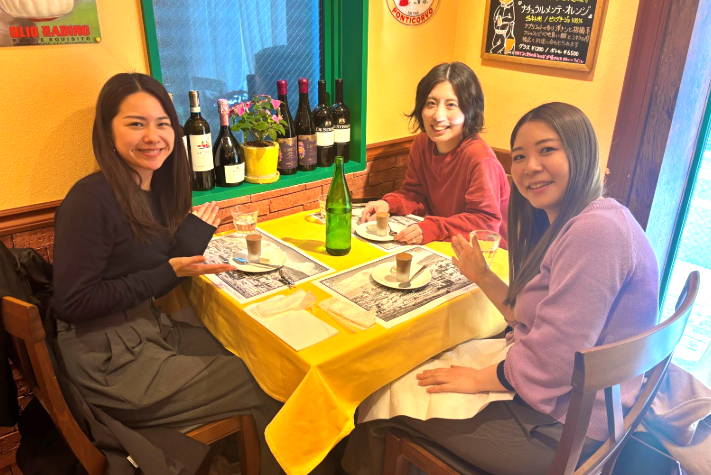 この日は女性メンバー3名でランチに行ってきました!オフィスから歩いて5分ほどの場所にある、イタリアンレストランで美味しいランチを楽しみ、オフィスに戻る道中のお茶専門店でほうじ茶ラテをテイクアウトしました。