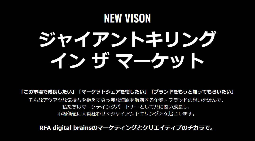 RFAには、「今月の売上が不足しているから、無理やり広告予算を上げて提案しよう」というコミュニケーションは一切ありません!!クライアントファーストで成果にコミットするご提案、ご支援をさせていただいています。