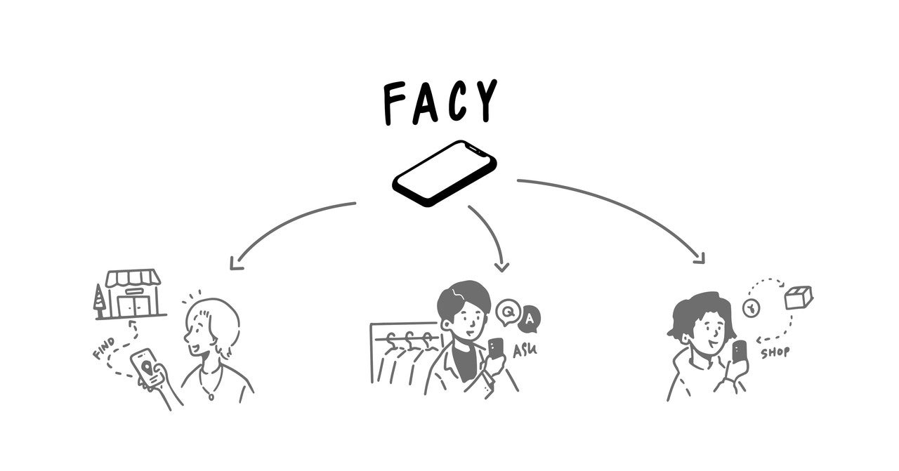 私たちのプロダクトは「FACY(フェイシー)」というサービスで、アパレルショップとユーザーを直接つなぎ、店員さんとオンライン上でコミュニケーションを取りながら店舗商品を購入できるサービスです。