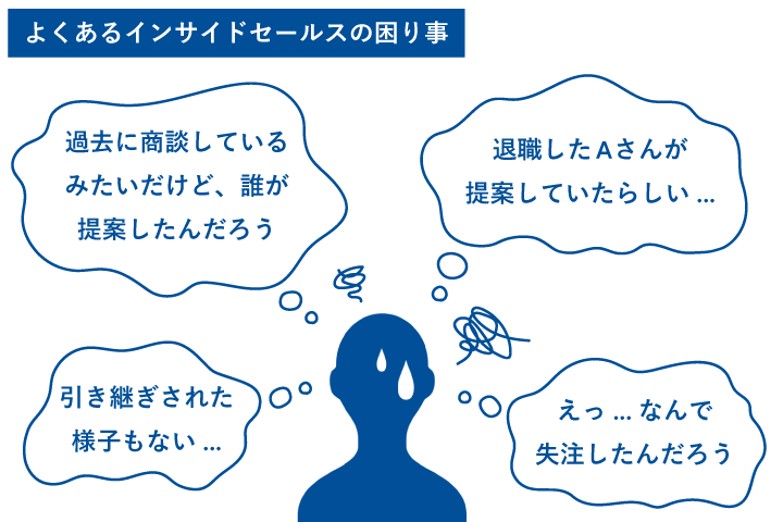 弊社では商談内容を「Sansan」上のコンタクトという機能(https://sin.sansan.com/best_practice/media-contact/)に残す運用を全社的に行っているため、退職者が過去担当し引き継ぎがされていない案件であっても、インサイドセールスが簡単に当時の提案を正確に把握することが可能です。