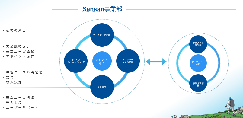 ー現場を経験されてから、今は企画の仕事を担当されているんですね。早速ですが、Sansanのインサイドセールスは、事業部の中ではどんな役割を持っているのでしょうか?