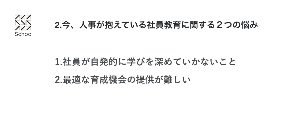 2.今、人事が抱えている社員教育に関する2つの悩み