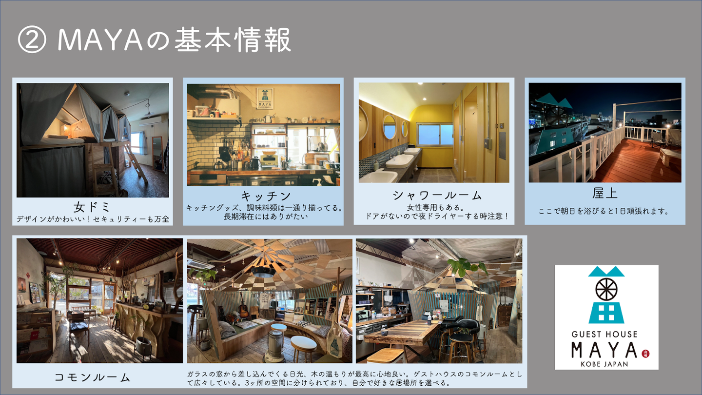 このエリアには、パンダがいることで有名な王子動物園や、美術館、酒造、摩耶山をはじめとする3つの山々、隣町には広大な港をもつ中心市街地の三ノ宮もあるなど、多くの観光資源にも恵まれています。物件選びに約2年もかかった朴さんですが、結果としてゲストハウスが地域の入口として機能し、ゲストにまちを楽しんでもらうための仕組み作りができているように感じました。