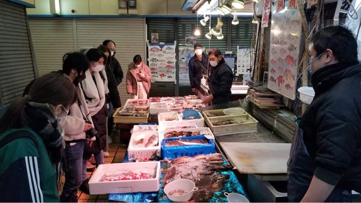 ▲新鮮なお魚の数々とお店の方の解説に興味津々。
