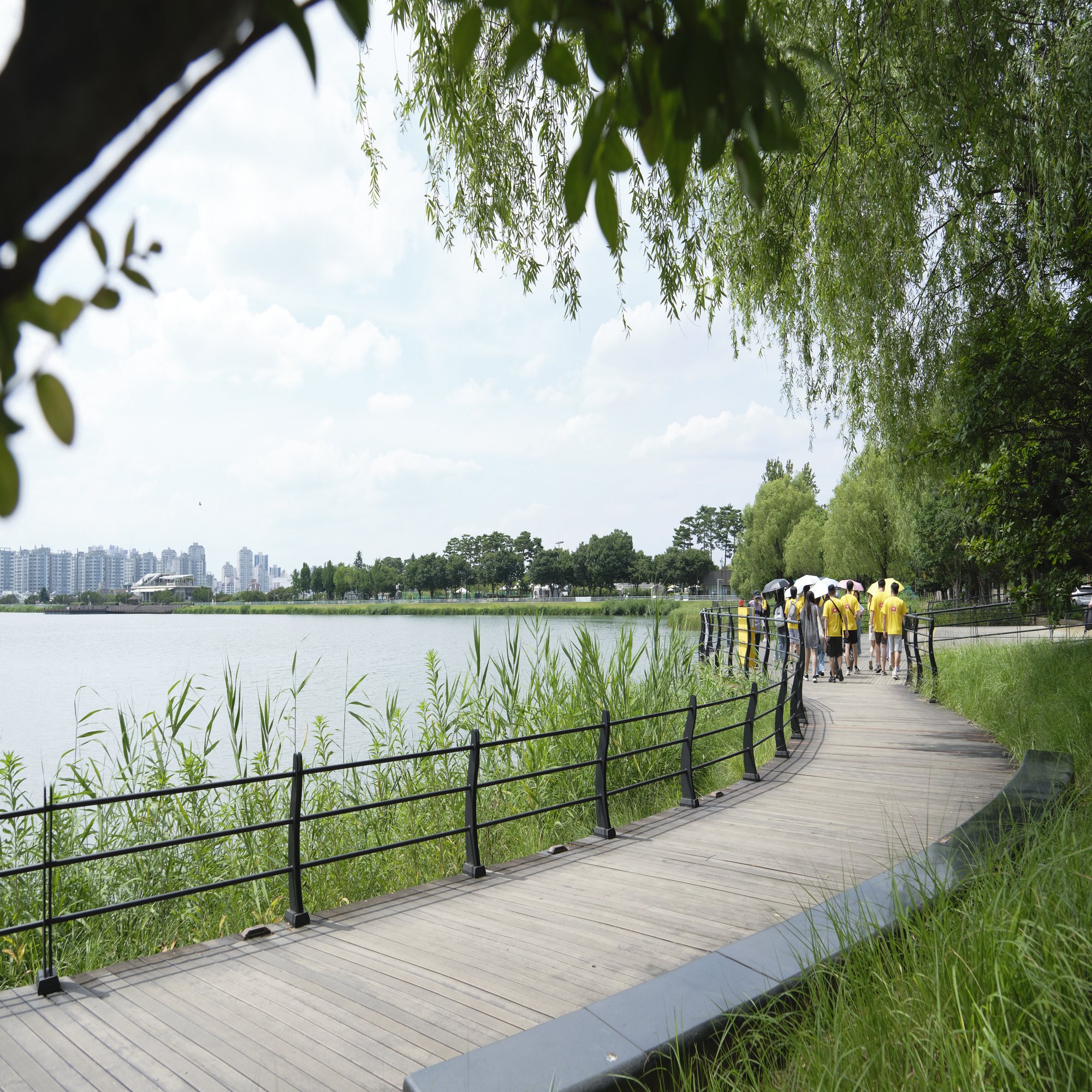 ここで自由時間です。腹ごなしに街中を散歩。公園のように整えられた水辺と緑道は、上野恩賜公園の不忍池のような雰囲気。