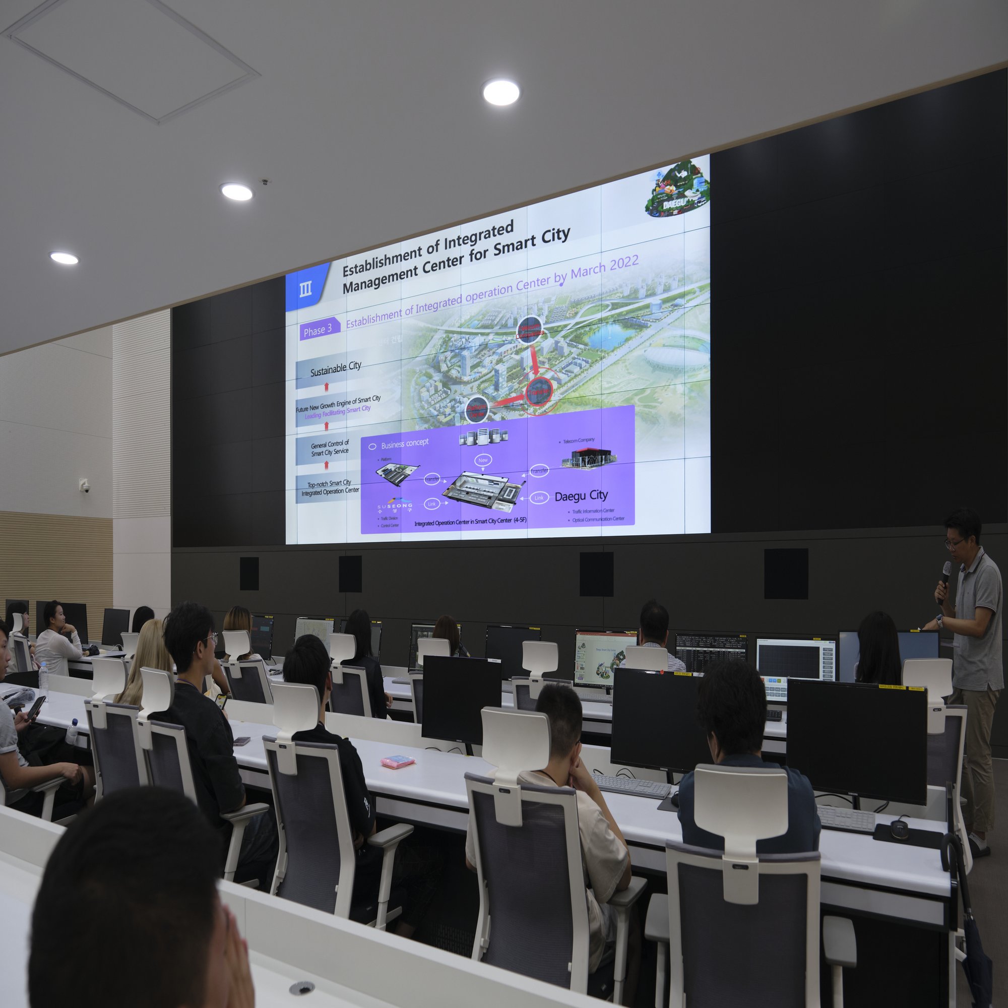 大邱市はいち早くスマートシティ構想を進めてきた都市であり、パーキングの空き状況や道路状況など、街のあらゆる状況をリアルタイムでデータで可視化する仕組みづくりが行われています。市の担当者から、そうしたまちづくりの取り組みについての解説がなされました。