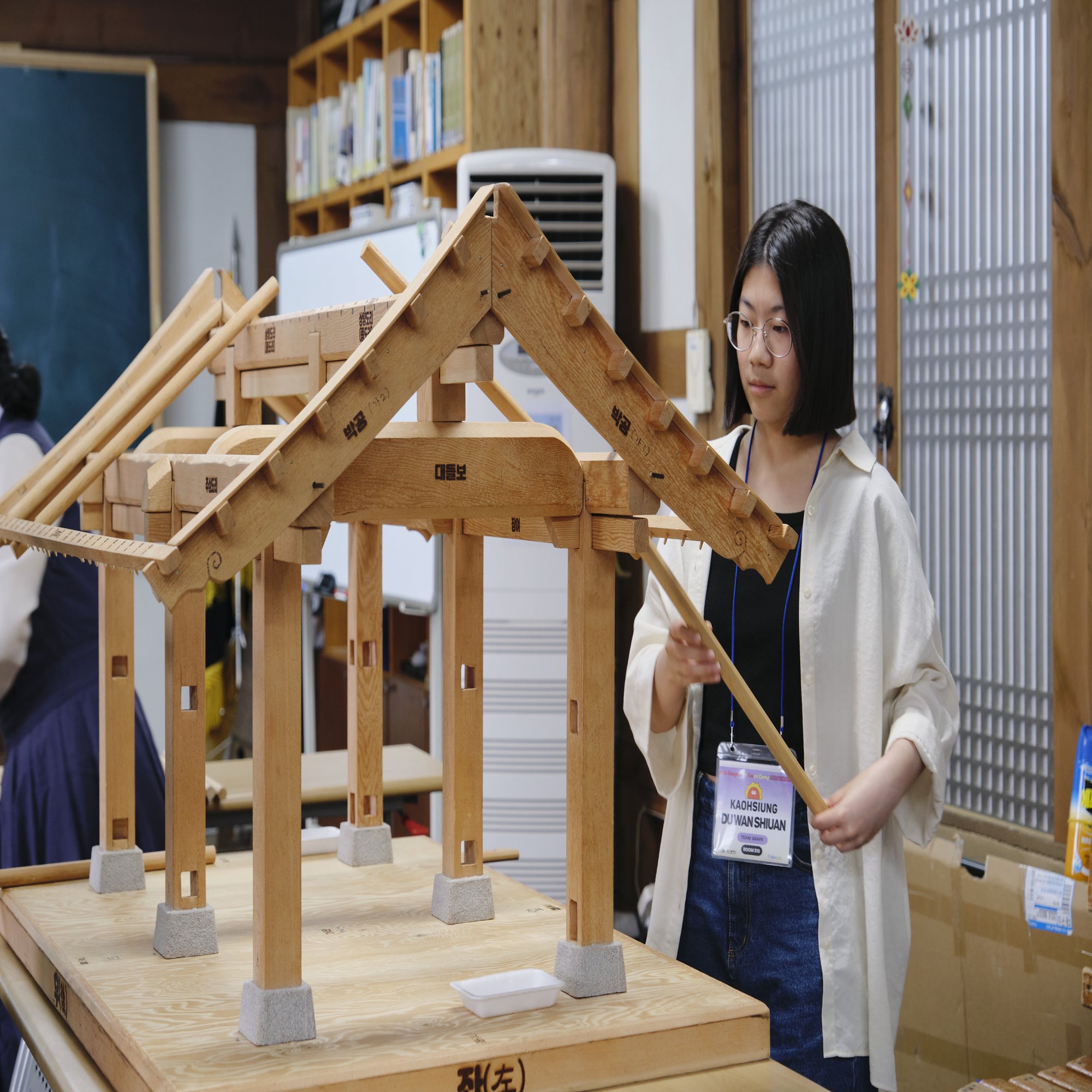 レゴのように組み立てる縮小版モデルで、韓国の伝統家屋のつくりを学んだり、