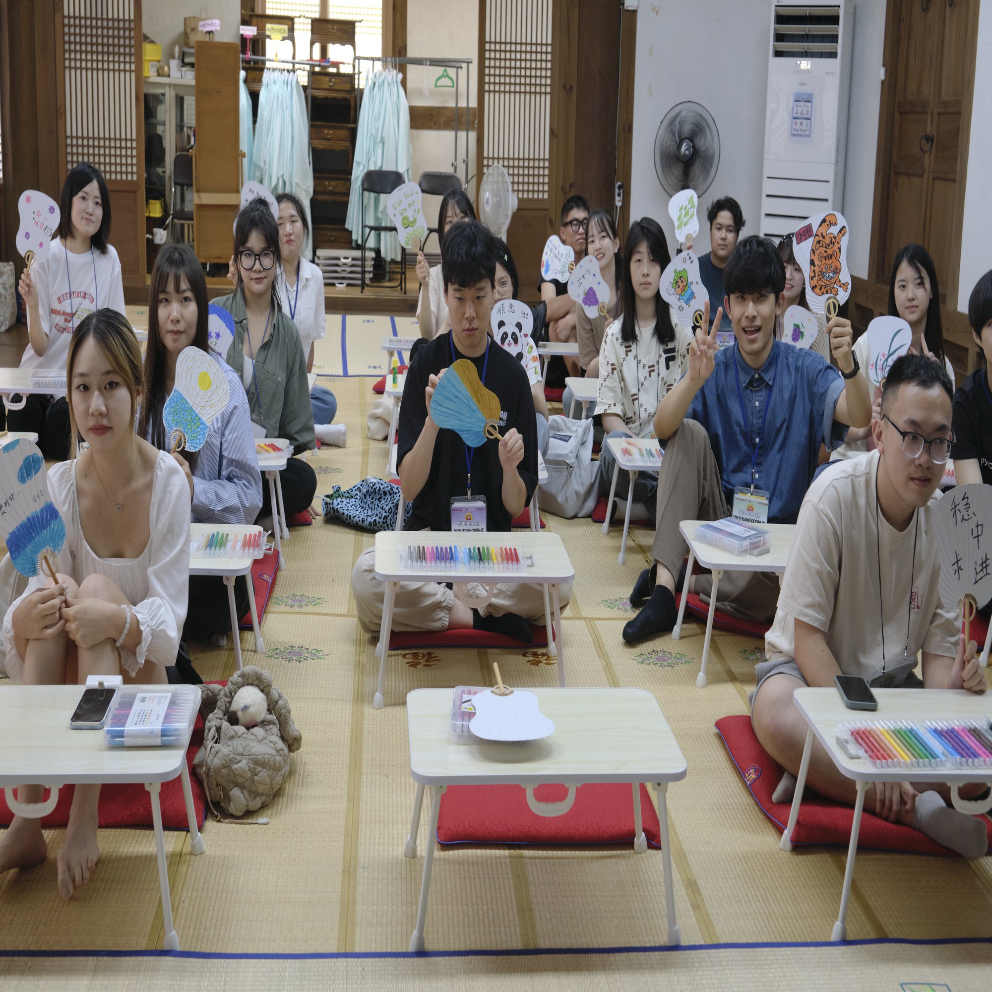 韓国の伝統的なうちわの手作りワークショップも。日本のうちわと形が異なるのが面白いですね。