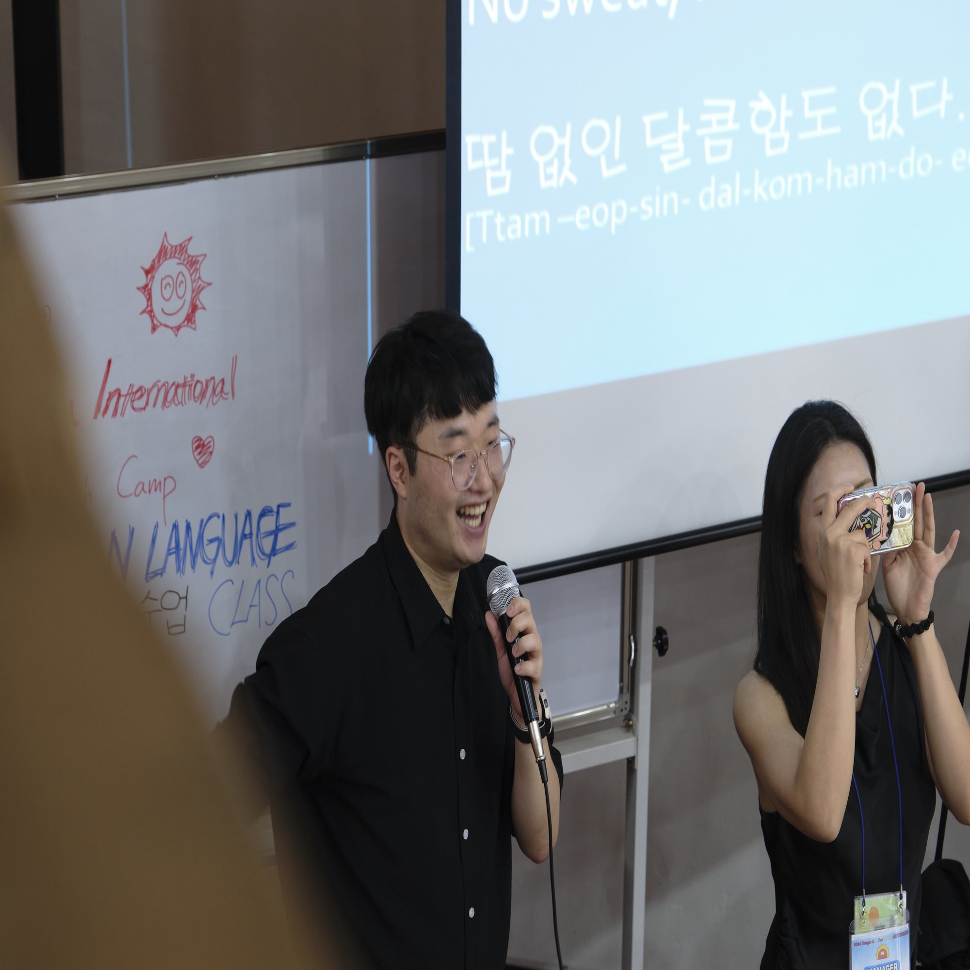 せっかく韓国にきているなら、やはり簡単な韓国語でのコミュニケーションをとってみたくなるもの! この日は韓国語講座から始まりました。