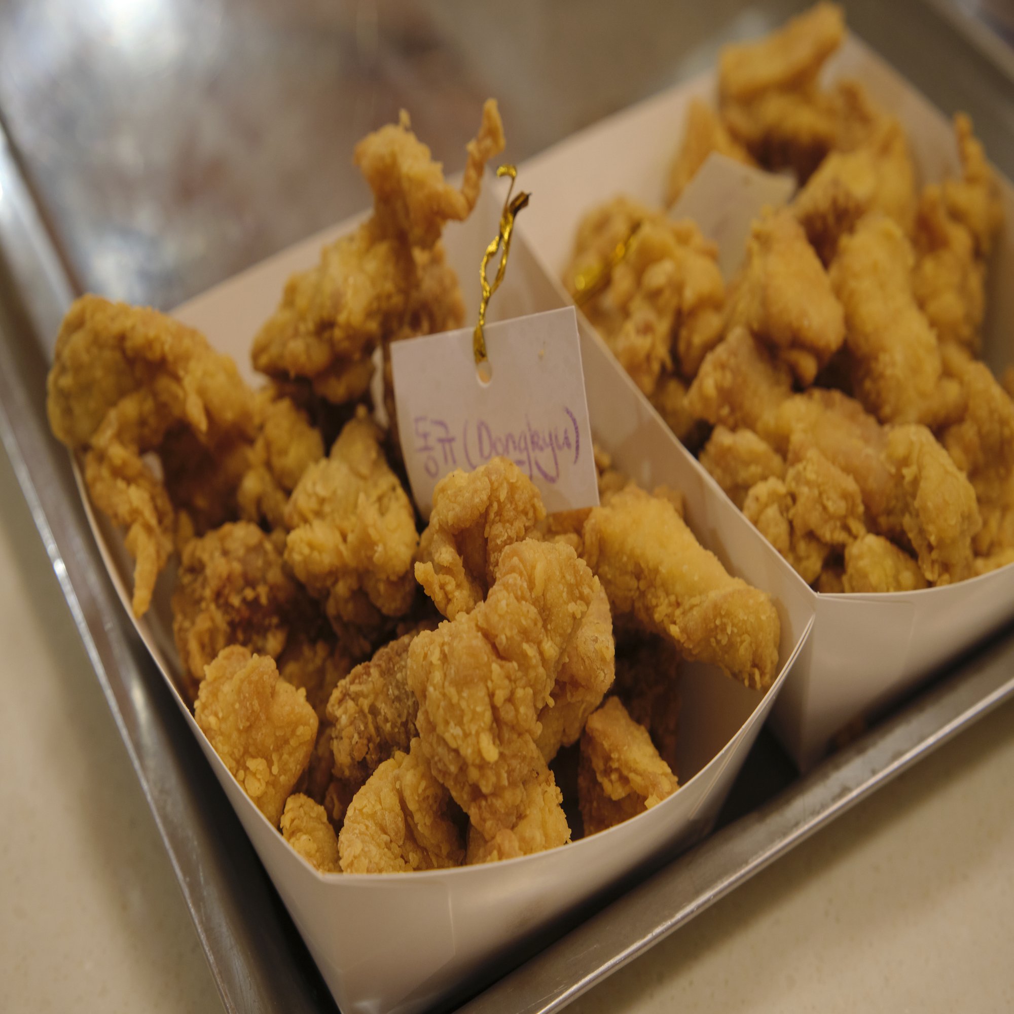 実は大邱の名物の一つが、チキンなんです。朝鮮戦争以降に養鶏場がたくさんできたことで鶏肉産業が発展した大邱には、フランチャイズのフライドチキン店がまさに群雄割拠。このテーマパークでは、なかでも人気が高い「タンタンチキン」のフライドチキンづくりを体験できます。