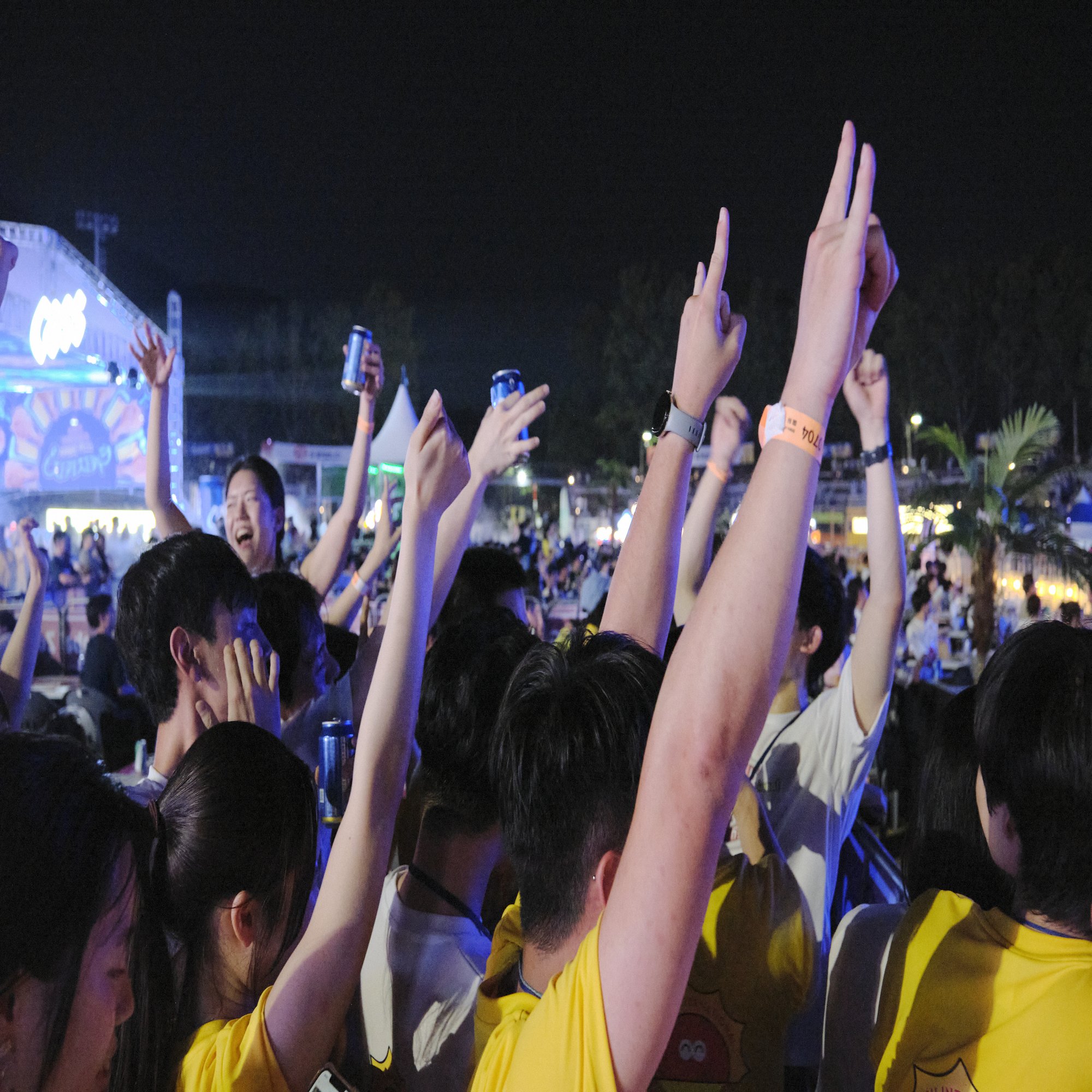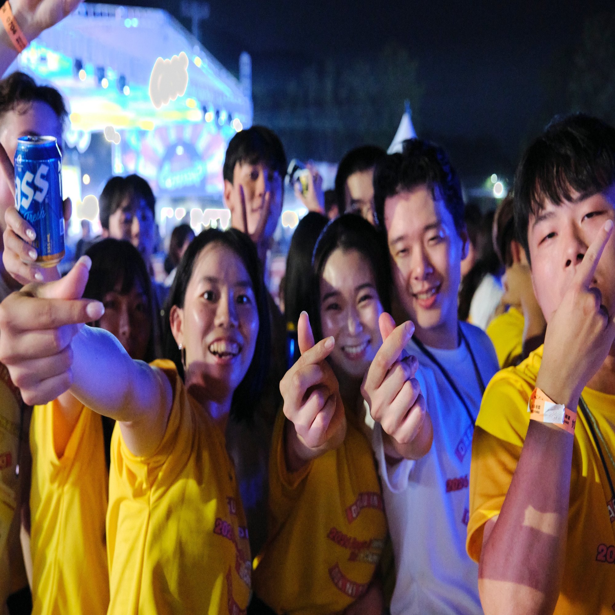 白いキャンプTシャツの学生は、大邱の大学に通うサポーターチーム!