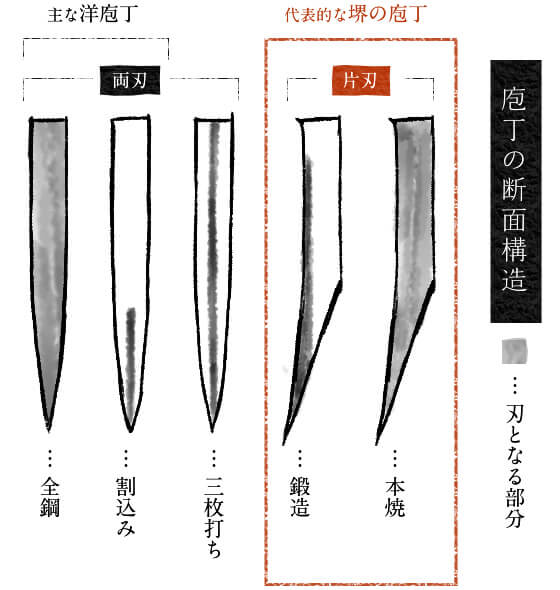 ーー地域性があるのは驚きですね!洋包丁と和包丁それぞれの“構造”や“特性” “素材”にはどんな違いがあるのでしょう。