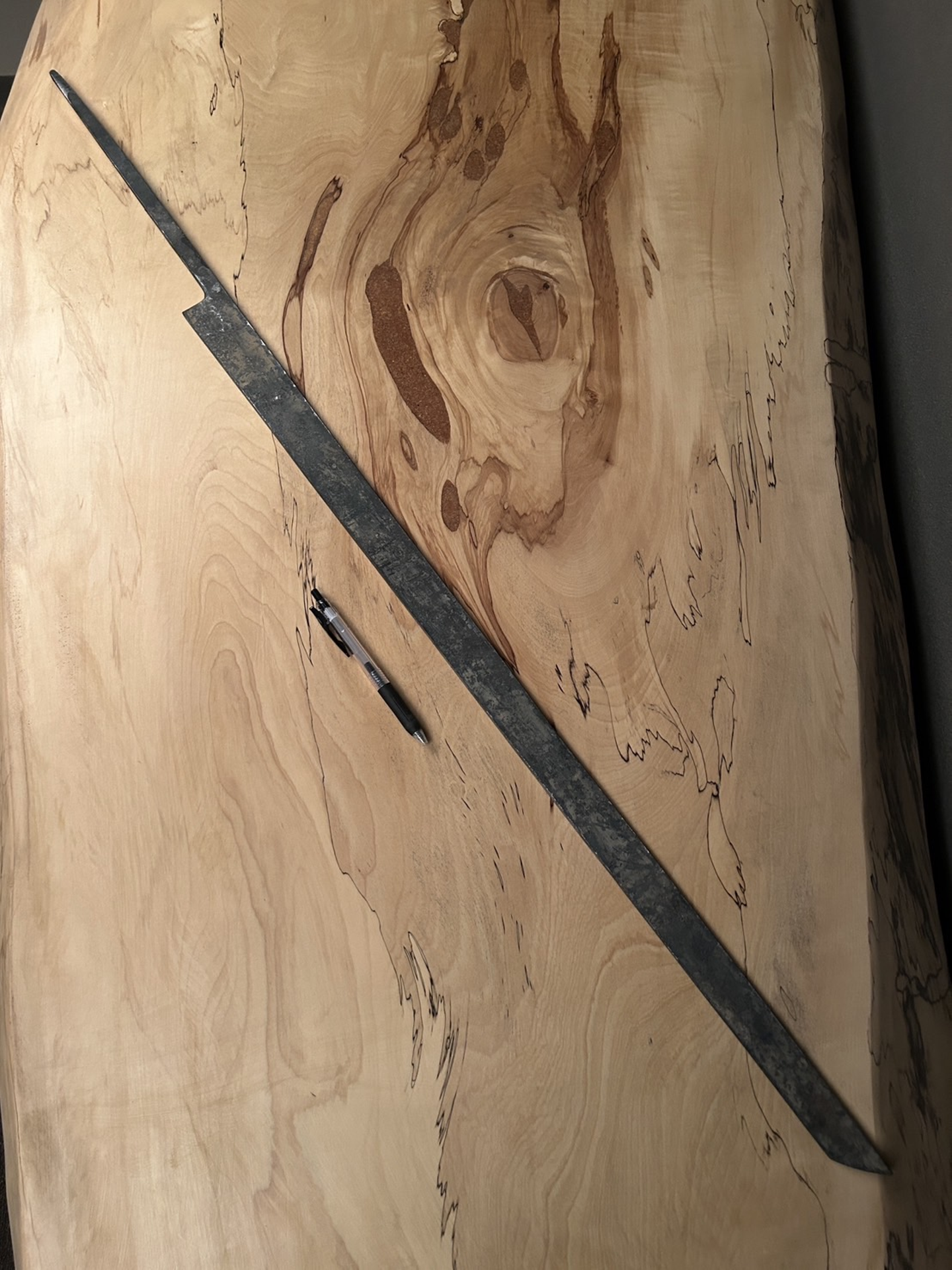 仕上げた包丁は、まっすぐで、凹凸やねじれのない理想的な状態。