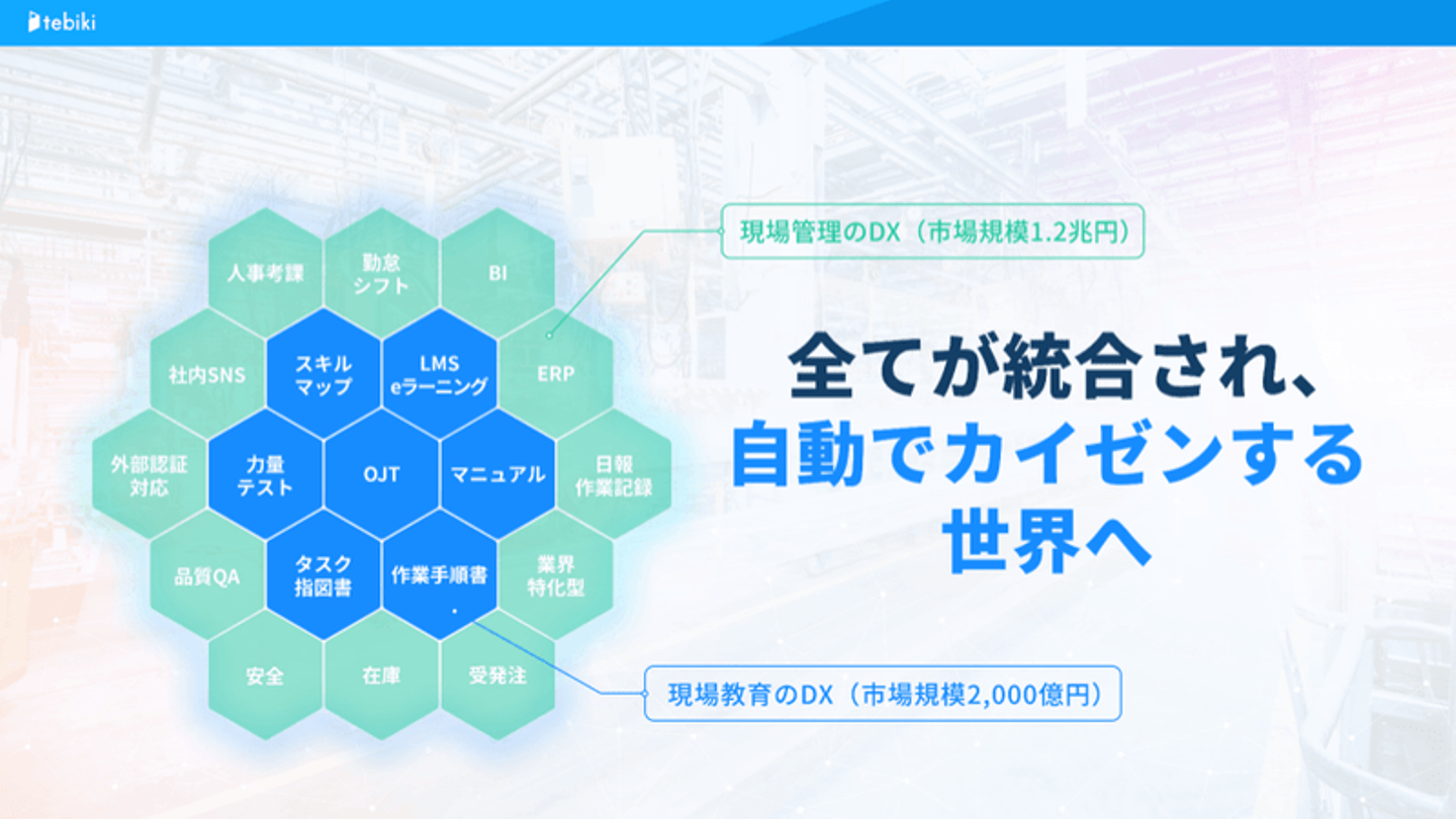 tebikiは、現場ノウハウという「動き」を可視化する動画データベースを構築して、OJTの自動化を進めてきました。次の大きな一手は、そこに人が動いた結果のデータをつなぐことです。たとえば作業ノウハウを可視化し、現場を教育し、その結果の歩留まりを見て、さらに現場効率を改善する。現場が求めている未来は、人とデータ、すべてが連動した現場統合プラットフォームにあると考えています。