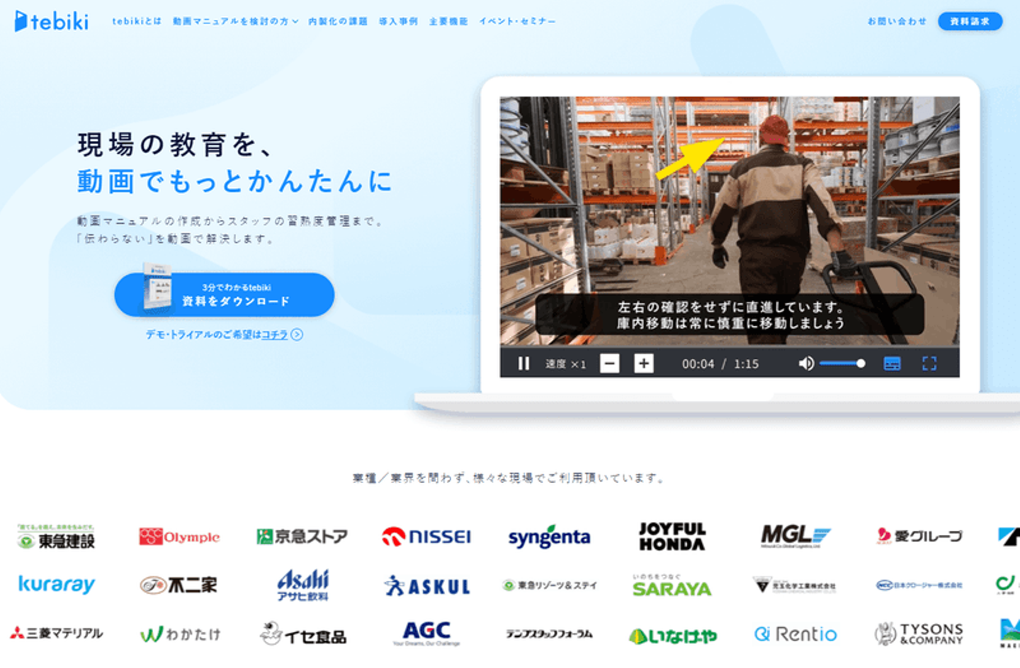 現場ノウハウは人の動きで、WordやExcelでは表現できません。これまで何とかしようとする人は動画が解決策だとわかっていたし、実際に動画撮影してましたが、かんたんに編集して社内共有する、というところが実はすごい難しくて、そのホワイトスペースにtebikiがびたっとはまったと思います。