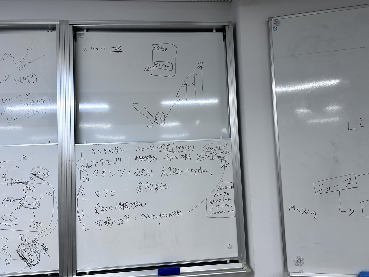 彼は、一般入試よりも難関といわれる東京大学推薦入試を、日本株投資の実績を武器に突破してきた人物でした。金融市場は一般に「ランダムウォーク」とされるなか、定性的な文脈にこそ鍵があるという仮説を持ち、それを大規模言語モデルの技術で解き明かそうとしていた。その視座は高く、単なる学生起業家の枠を超えたものでした。さらに、起業やビジネスに対する視座の高さも際立っていました。未来の市場をどう動かすか、AIで何を変えるか、その議論の鋭さは群を抜いていました。