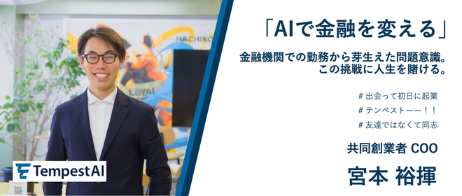 【AIで金融を変える】金融機関での勤務から芽生えた問題意識。この挑戦に人生を賭ける。TempestAI COO 宮本裕揮