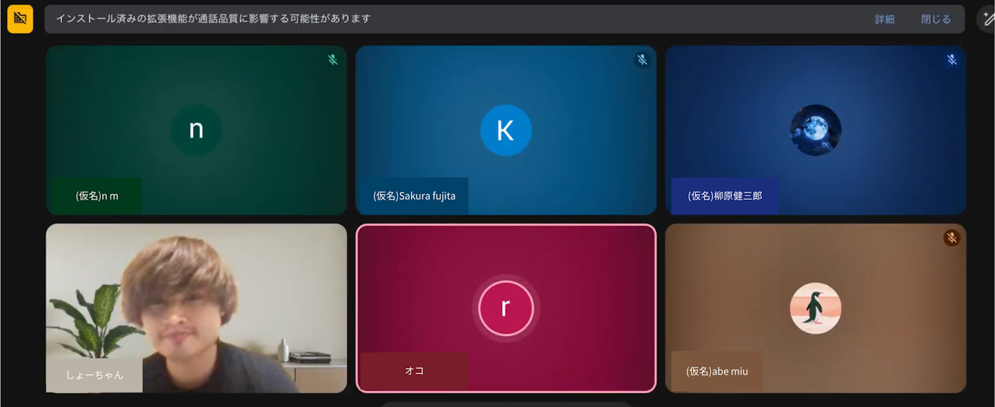 とお伝えしたあと、次の瞬間、カメラをオンにした既存メンバーたちが次々と登場!