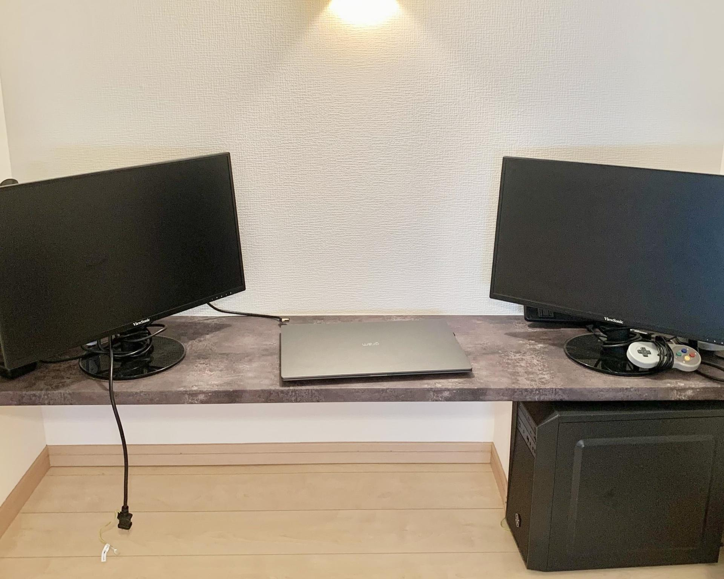 家のロフトのテーブル席が学習スペースです。玄関から階段でロフトにいくことができ、テーブルも備え付きで秘密基地のようなお気に入りスペースです。