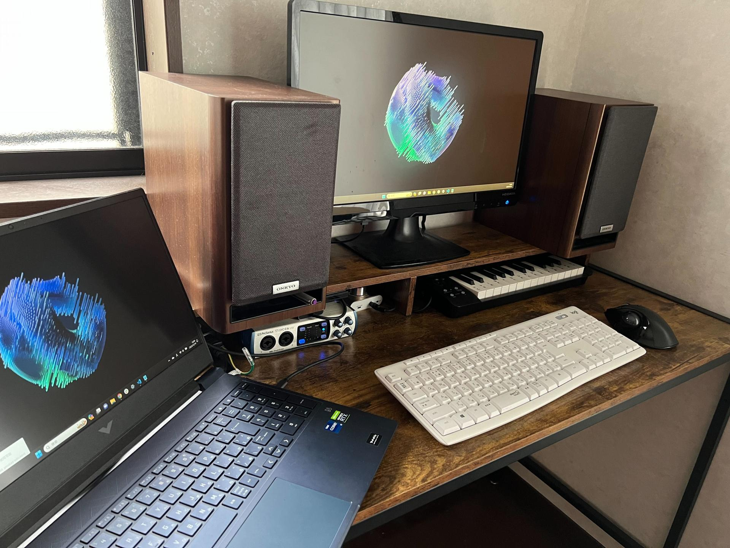 自室です。自室だと自分の好きなタイミングで勉強でき、休みたいと思ったらすぐ休める環境ですし、世界で1番落ち着ける場所です。また、勉強をする上でデュアルディスプレイの方が作業効率がいいので、ノートパソコンとモニターで作業しています。