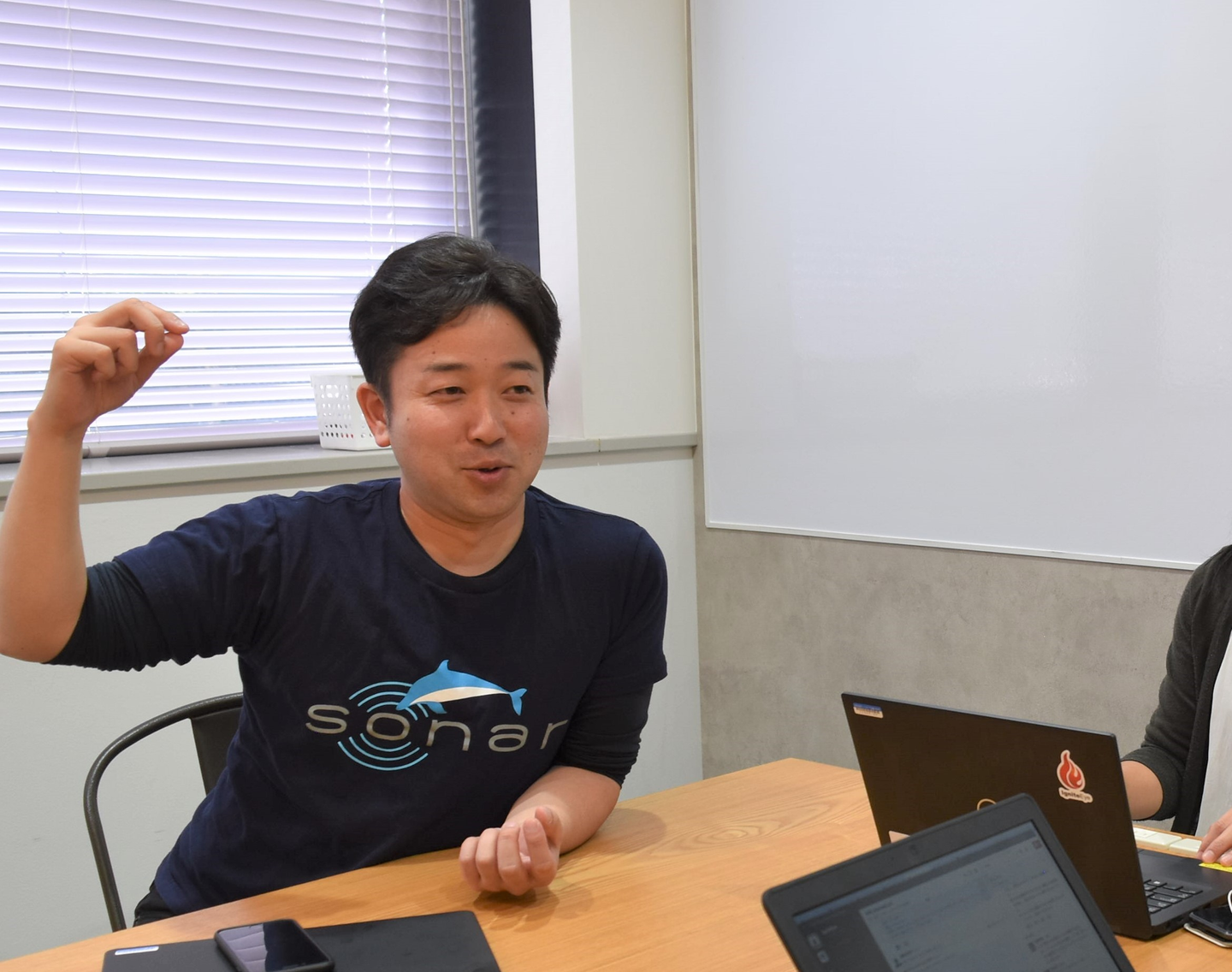 自分の場合は、マニュアル通りにやりなさいって言われるとストレスに感じるのですが、Thinkingsではそれがないので。能動的に、自分の意思で仕事が出来るっていう自由さがいい感じです。コアタイム以外は自分の裁量でスケジュール調整できますし、スーツを着て仕事することも求められていないので、商談やイベントに登壇する際はsonar ATSのTシャツで行っています。まさに“comfort(快適)”ですね。