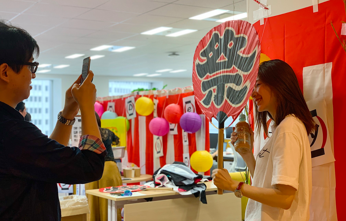 例えば、先月は七夕夏祭り🎋を行いました!オフィスに本格的な綿菓子の機械や輪投げ会場を準備したところ、みなさん童心に帰って夏祭りを楽しんでくださいました!もちろん夏祭りらしい食べ物も!