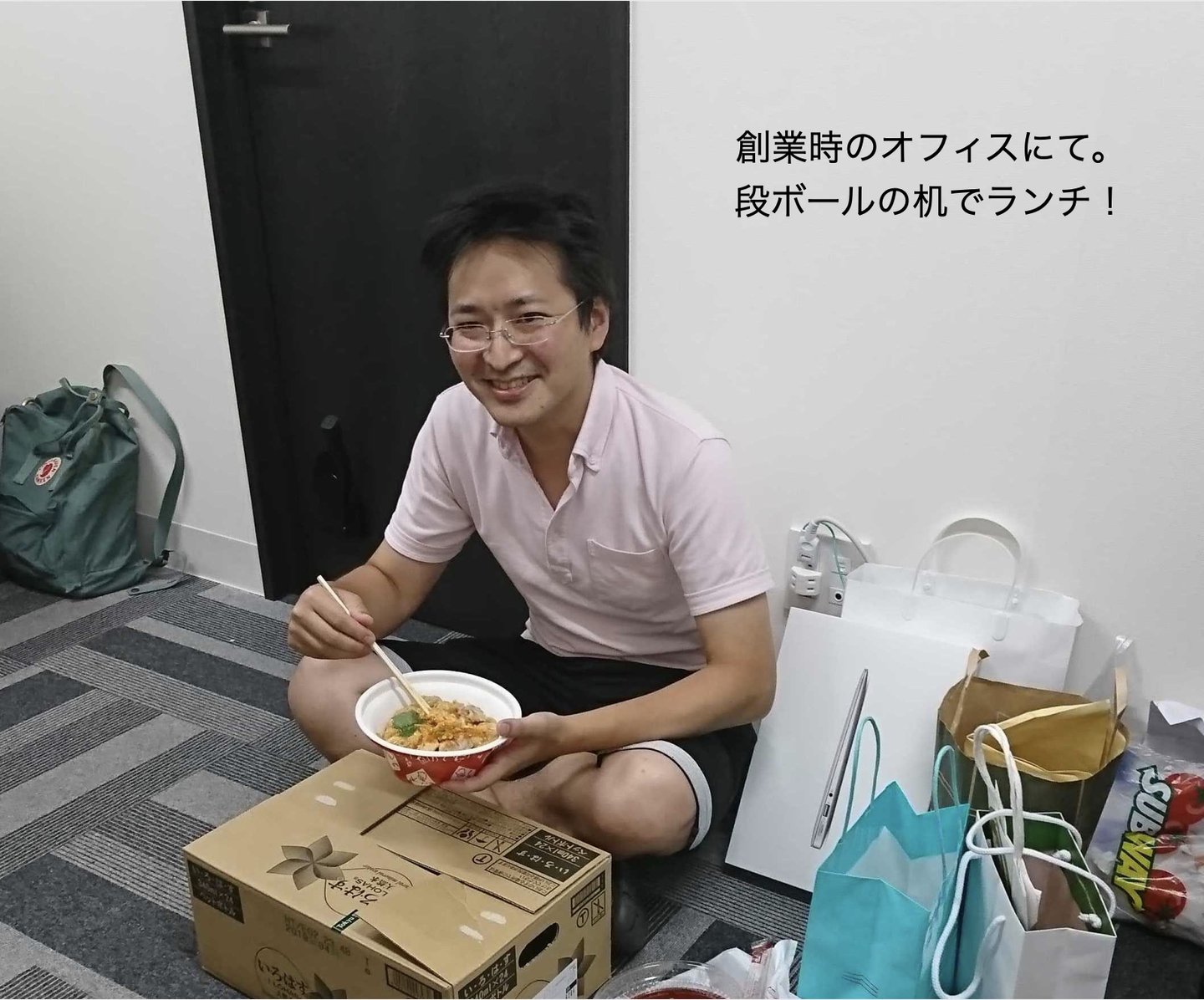 ただ、創業時のバタバタはいくつかありました。オフィスは五反田の4畳半のレンタルオフィスで4人分の机を並べていましたが、開発スピードを早めるためすぐにメンバーを増やし2人ジョインしたところで、机が足りなくなり、社外にでてることが多い私はオフィスの外で段ボールの机を用意してそこで作業をすることになりました。腰が痛くなることがたまにありましたが、意外とできるものですね(笑)。