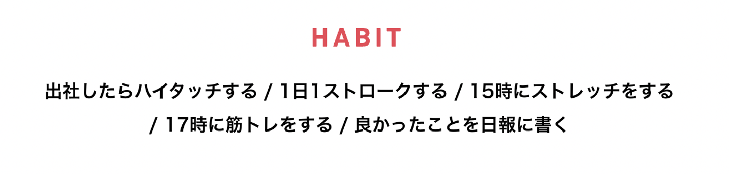 更に独自の社内制度として、従業員が毎日実践する習慣「Habit(ハビット)」を定めています。
