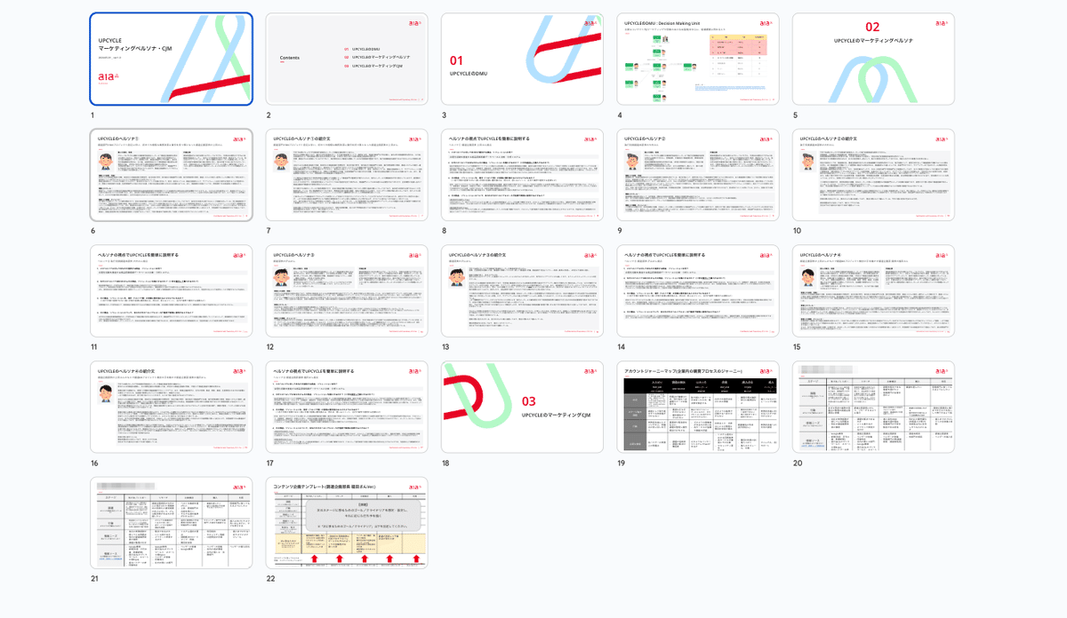ペルソナやCJMを作ったものの使われなくなってしまっている、あるいはそもそも要らないんじゃないか、そんな話を目にすることもありますが、A1AではペルソナとCJMを精緻に作成したうえで、各種コンテンツに落とし込んでいます。