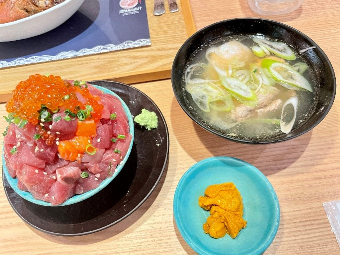 一緒に熱海を観光したグループのメンバーはうにと魚のあら汁を注文していました。