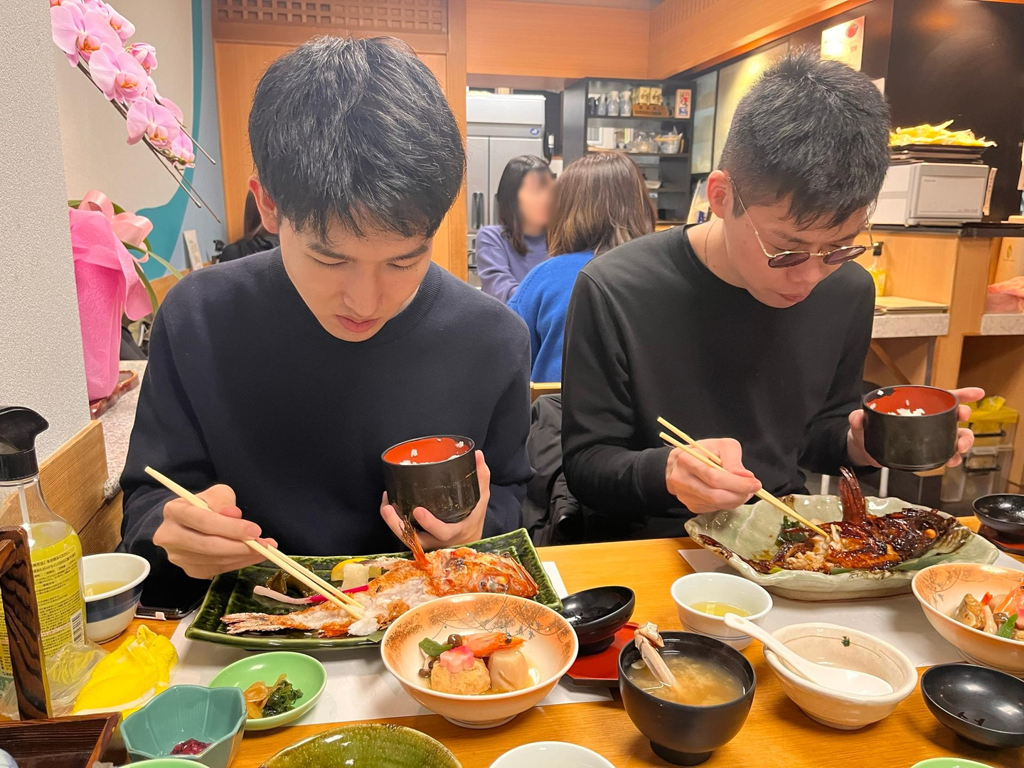 メインの魚料理はもちろん、海老やカニの出汁がたっぷりのみそ汁など、どの料理もおいしくメンバー一同大満足でした!