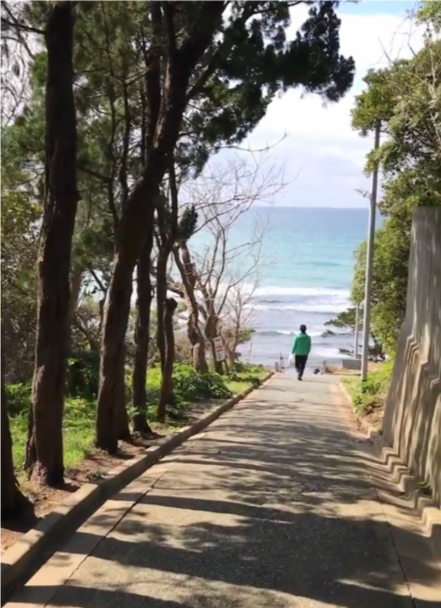 三苫海岸の神社裏の坂から海に続くこの風景が好きです!