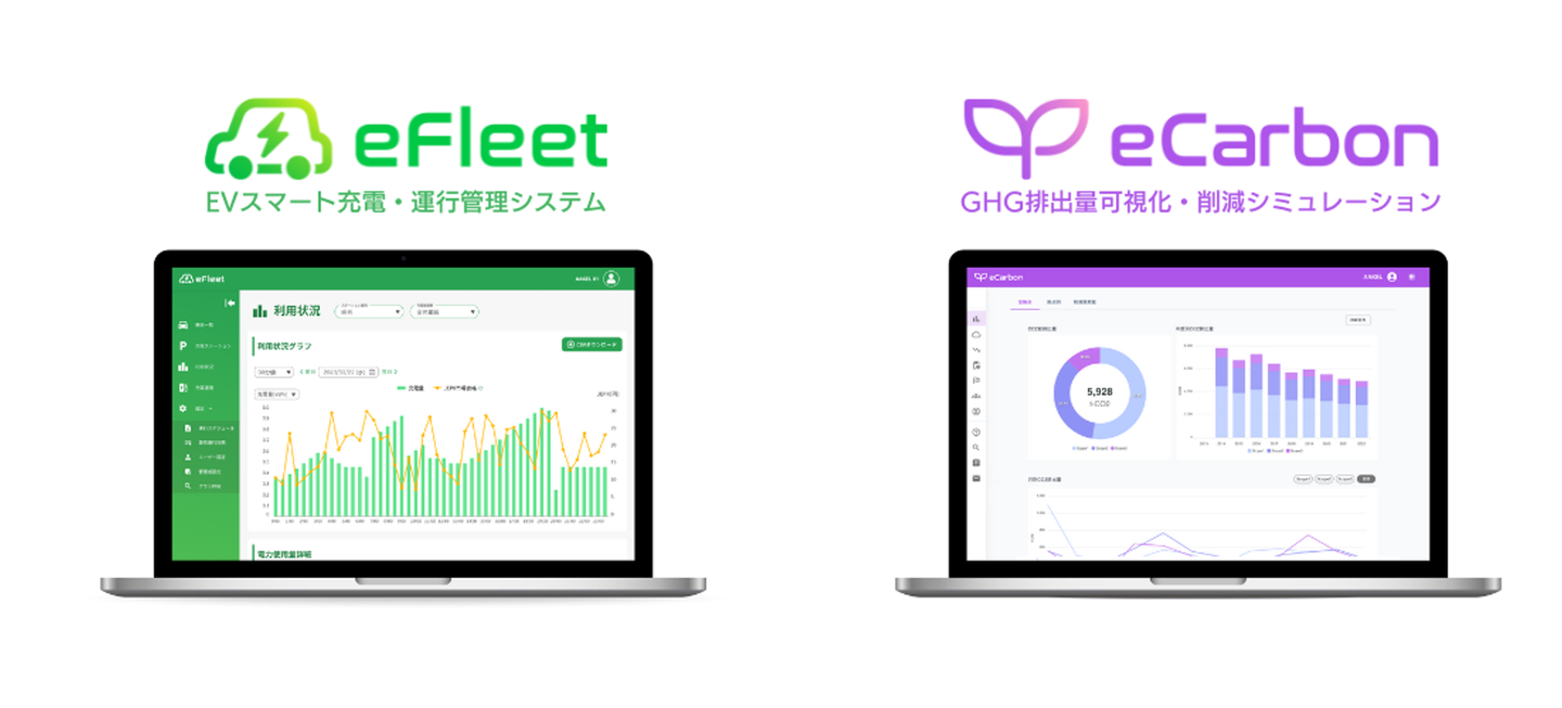 アークエルの2つのプロダクト「eFleet」(左)と「eCarbon」(右)
