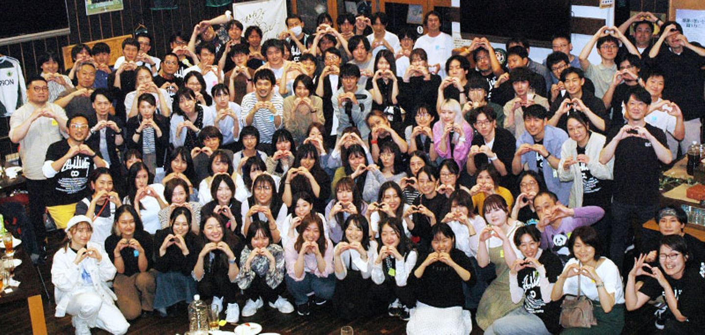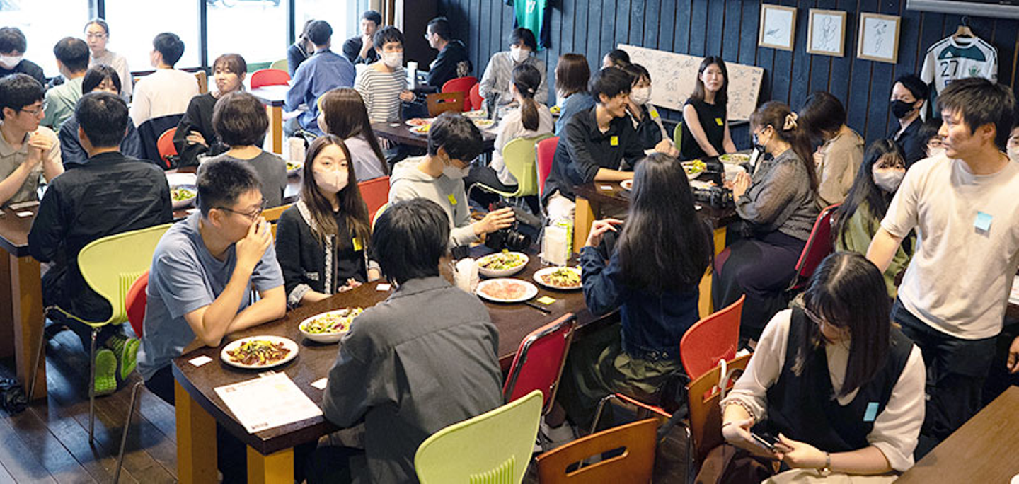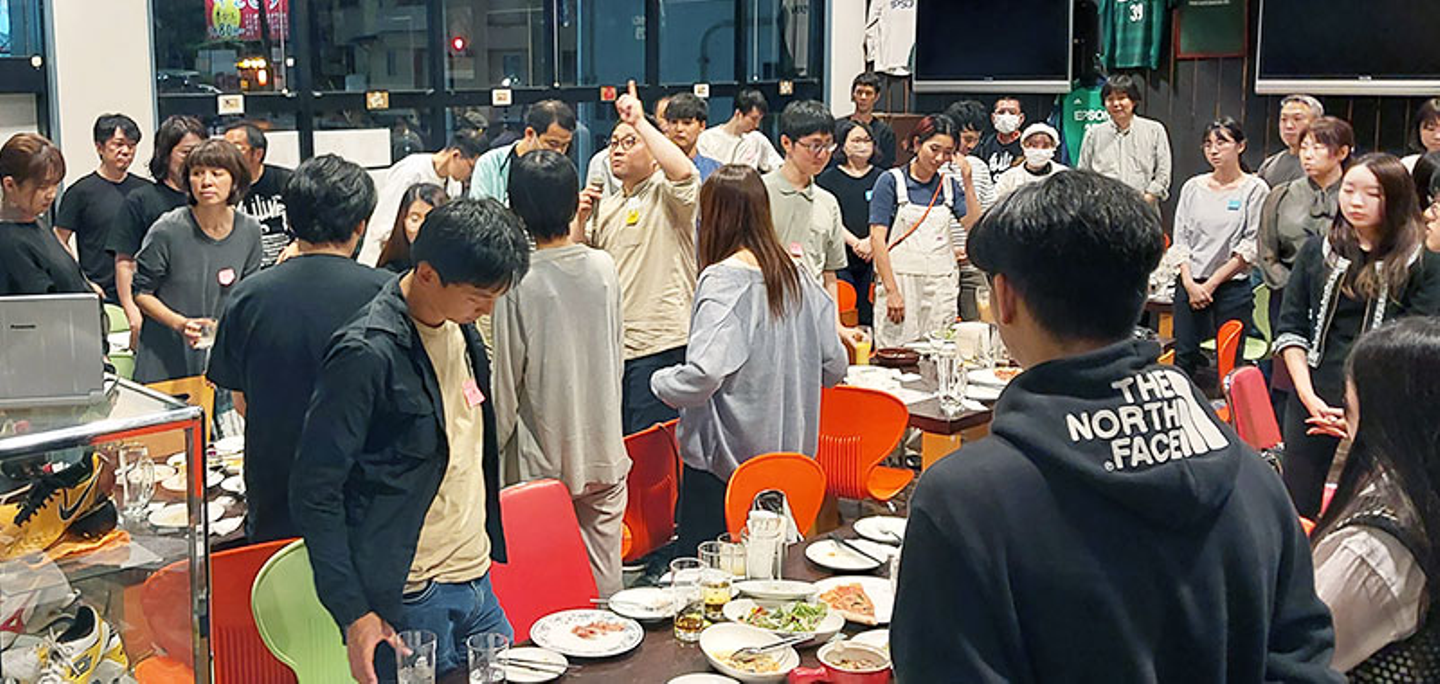 全支店のメンバーが続々と集まります。くじ引きで席を決め、宴会がスタート!