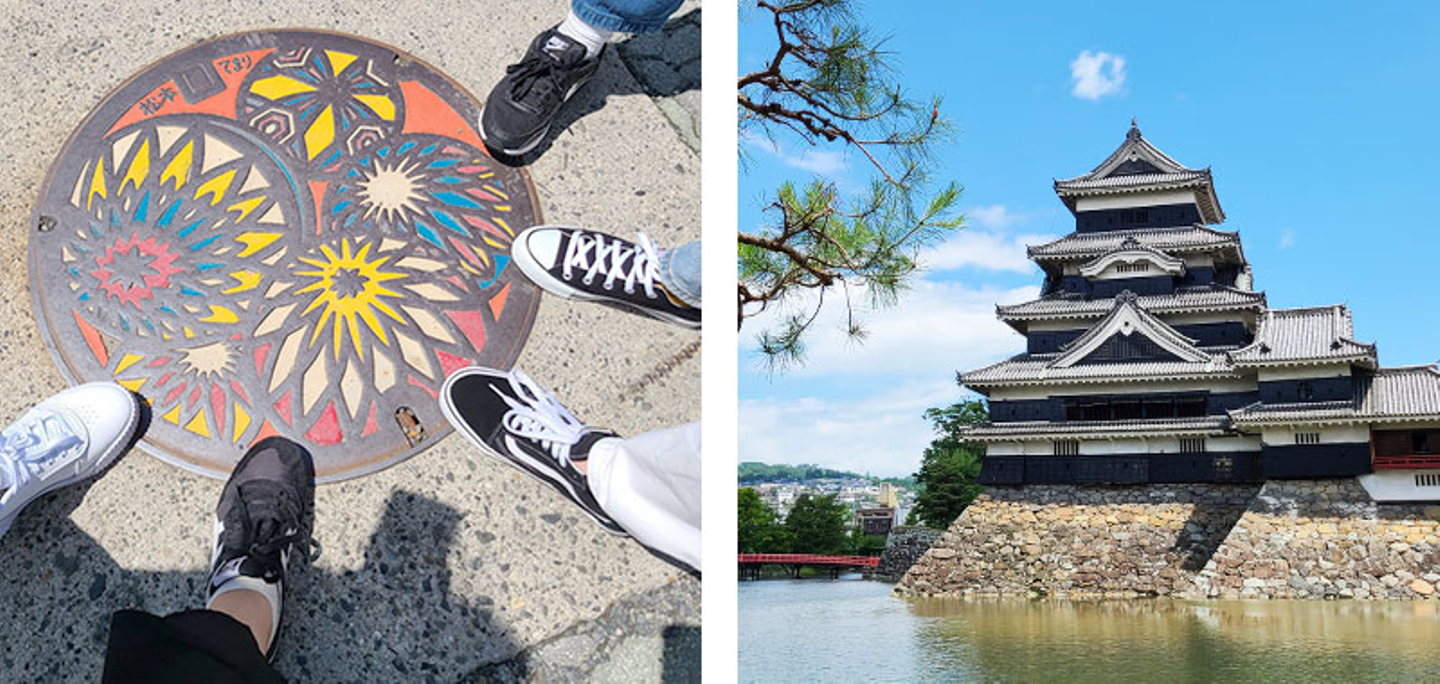 チェックアウト後は、自由時間で松本城の周りの散策へ。 プリンやバームクーヘン、鰹節、わさび漬けなどなどたくさんのお店をまわることができました。 わさびはあまり得意ではなかったですが、本場のものは新鮮で味がすっきりしていて食べやすく思わず購入。その他にも、信州のフルーツジュースにそば粉使用のどら焼きとかりんとう、長野らしいものをたくさん購入できたので大満足です!