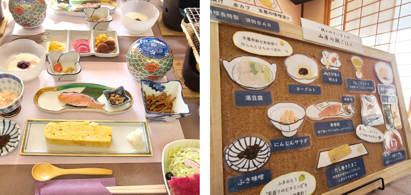旅先の朝食って、特別感があって毎回楽しみです。 素敵な朝ご飯で朝を迎えられると、良い一日が始まる予感がします。 品数の多さに驚き!山ウドのきんぴらや、わさび漬け、信州のりんごジュースなど、長野ならではの朝ご飯に幸せな気分になりました!