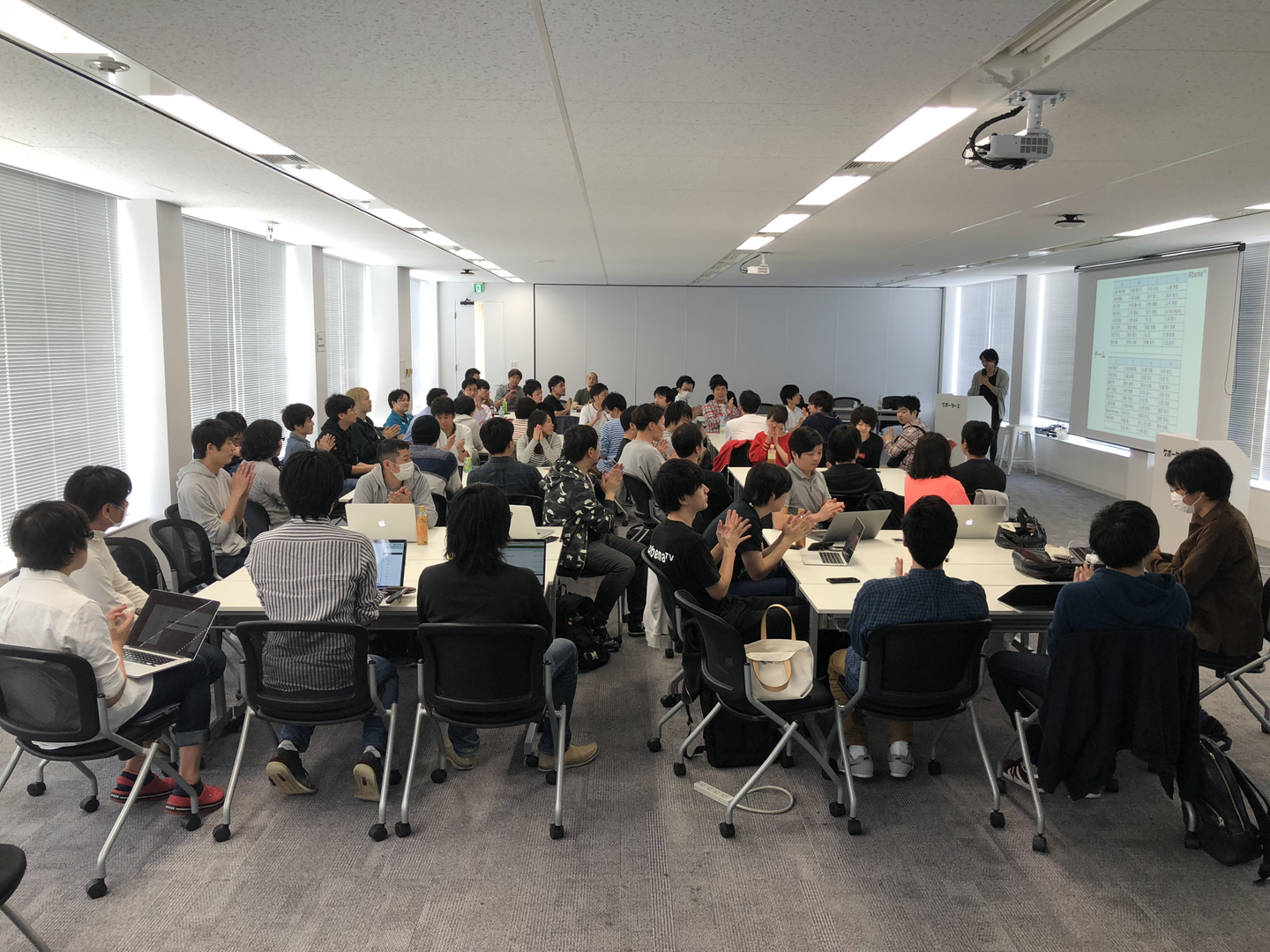 (写真)2018年4月の合宿風景。今期は20個のOKRを開発チームでコミットします。