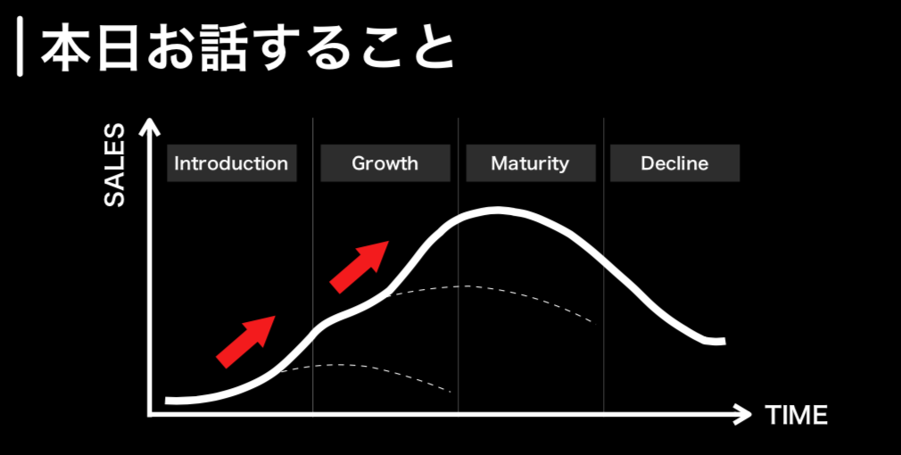 AbemaTVはこれまでに500億の先行投資をする、まさにサイバーエージェントの社運をかけたプロジェクト。「ネット発のマスメディアを創る」というビジョンを掲げ、現在3年目を迎えています。開発本部長として、初期から携わってきた長瀬は「PMのミッションはプロダクトの成果を最大化することである」と言い、Introduction期とGrowth期において大切なことについて語りました。