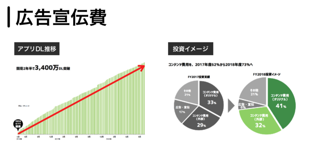AbemaTVでは1年目から2年目にかけて、広告宣伝費を削減しています。初年度は広告費を投下し、ブランド認知を促進しましたが、2年目以降はコンテンツの力を使ってサービスを伸ばしていく方針で、Twitterの吐き出し機能はまさにその好例にあたります。